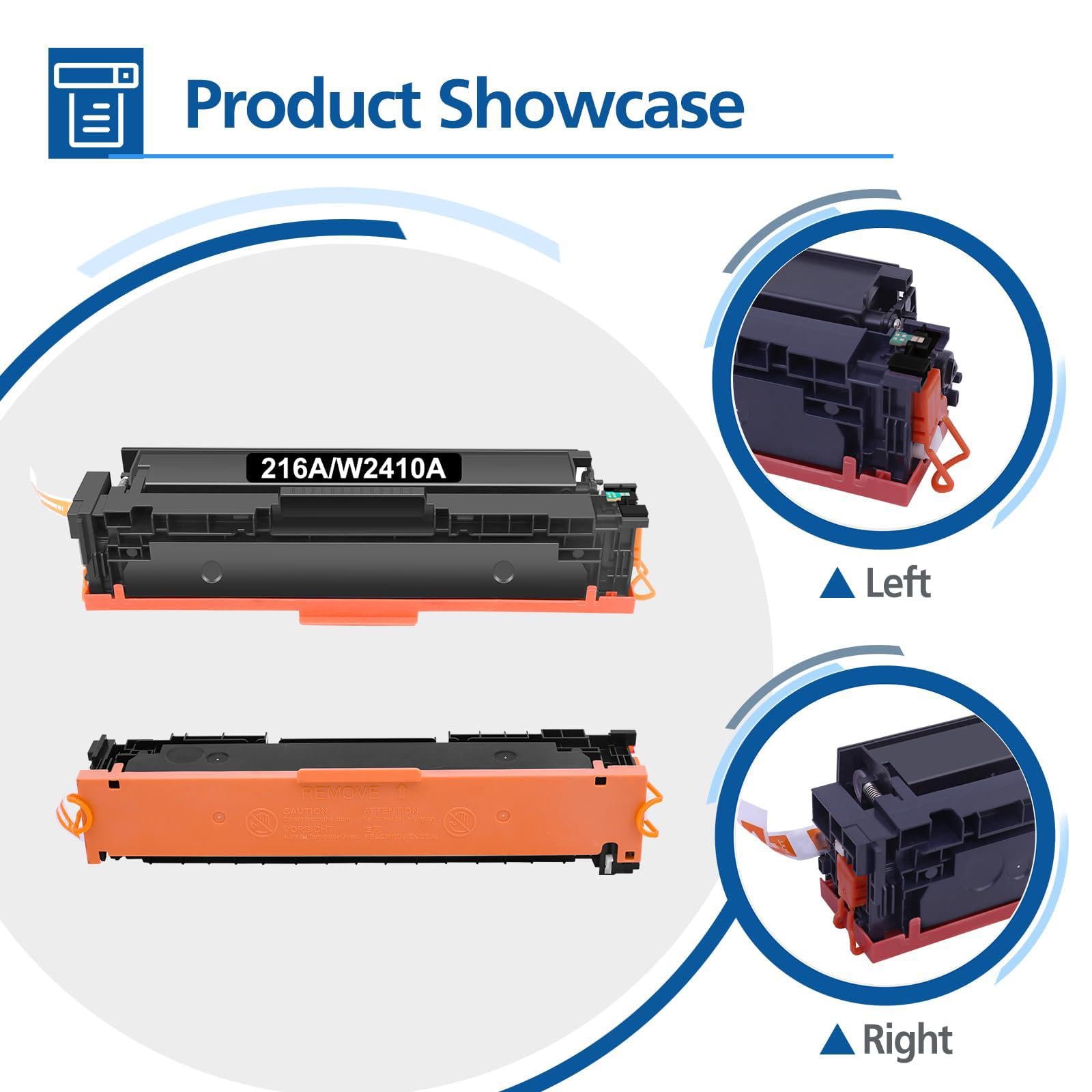 ["4 Packs Compatible for 216A (With Chip) Toner Compatible for 216A Toner Set W2410A W2411A W2412A W2413A for Color LaserJet Pro MFP M183fw Toner","Compatible Printers: Color LaserJet MFP M183fw M182nw M182n M183 M182, Color LaserJet M155a M155nw M155 Printer","Page Yield: 216A W2410A Black approx. 1050 pages, 216A W2411A W2412A W2413A Cyan Magenta Yellow approx. 850 pages (Letter A4, at 5% coverage)","Color: 1 x Black 216A W2410A, 1 x Cyan 216A W2411A, 1 x Yellow 216A W2412A, 1 x Magenta 216A W2413A","This product has a chip, you do not need to transfer the OEM 216A chips onto it. A problem with this prod"]