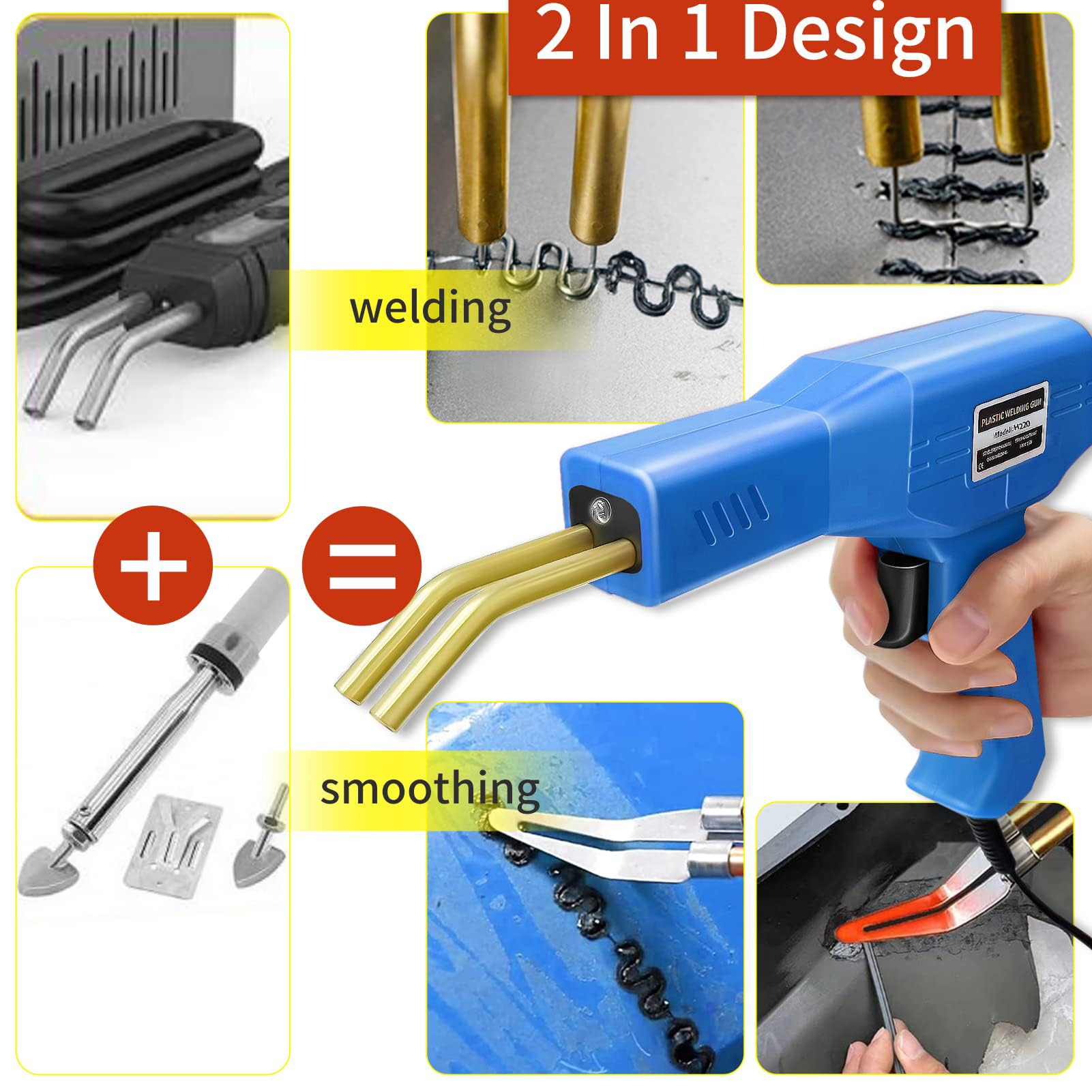 220W plastic welder 2 in 1 bumper repair kit plastic welding with 800PCS hot staples, 2 thermal smoothing head, 40PCS plastic welding rods, plastic repair kit auto (Blue)