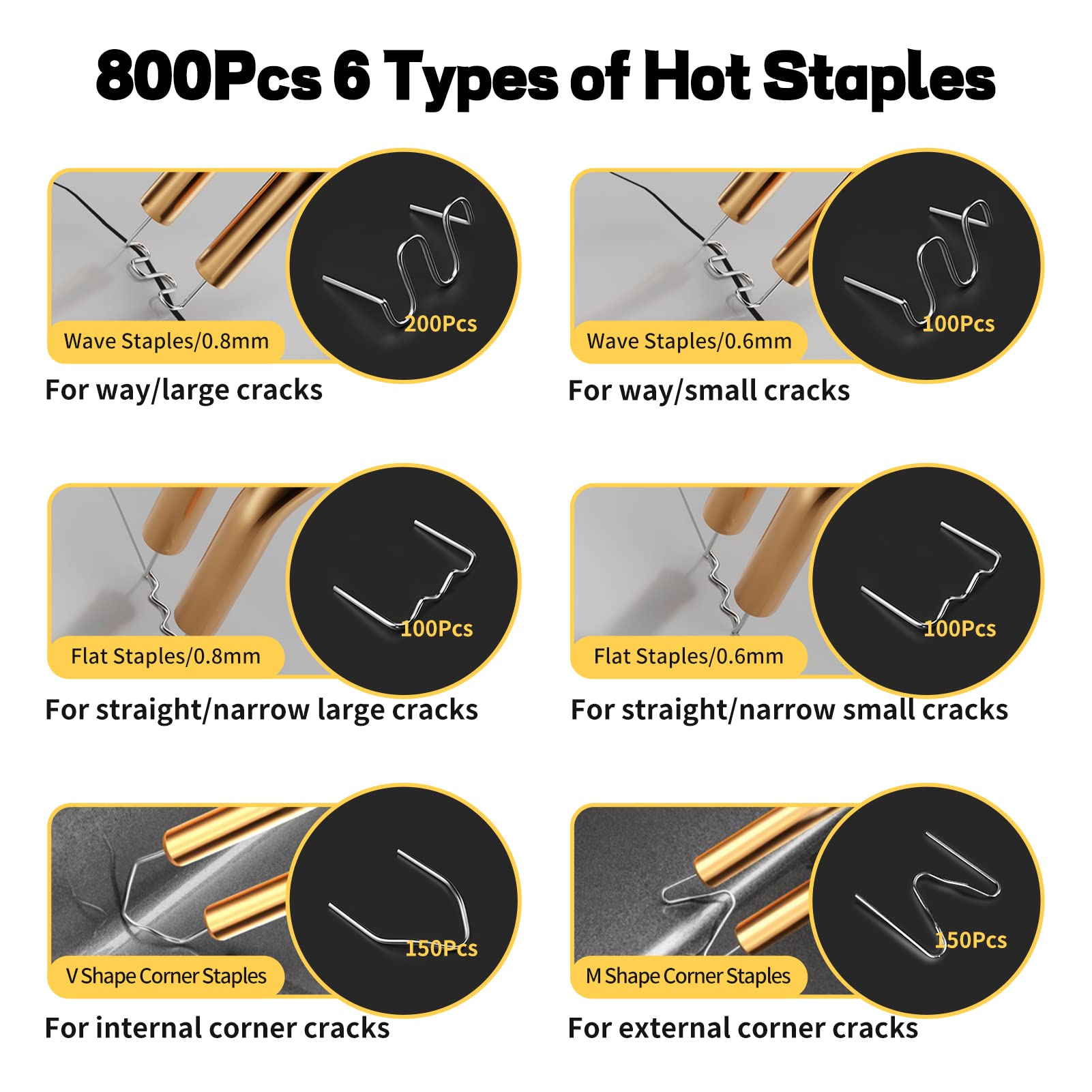 2-in-1 design, in addition to 800pcs hot staples, the kit also comes with 40pcs plastic welding rods, 2 thermal smoothing head. After welding the cracks with hot staples, install the smoothing head and it can be used as a smoothing tool to make the welding surface smooth. Welding and smoothing 2 in 1, no need to buy additional smoothing repair tools, save money and make your welding work more professional.