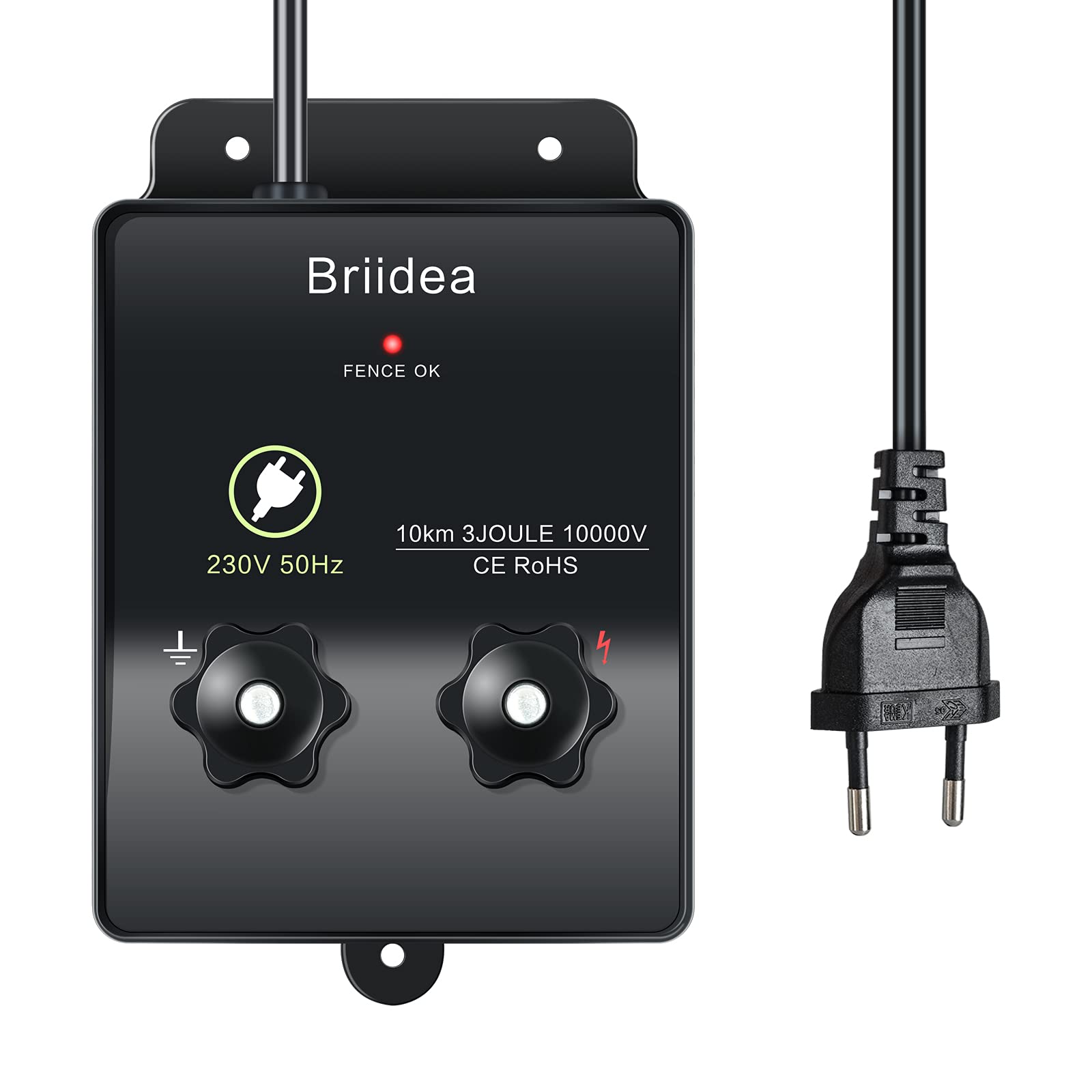230V electric fence energizer, Briidea 6.2 miles electric fence energizer for dog fence, livestock fence, squirrel, used for gardens, chicken coops, Easy installation, 3 Joules