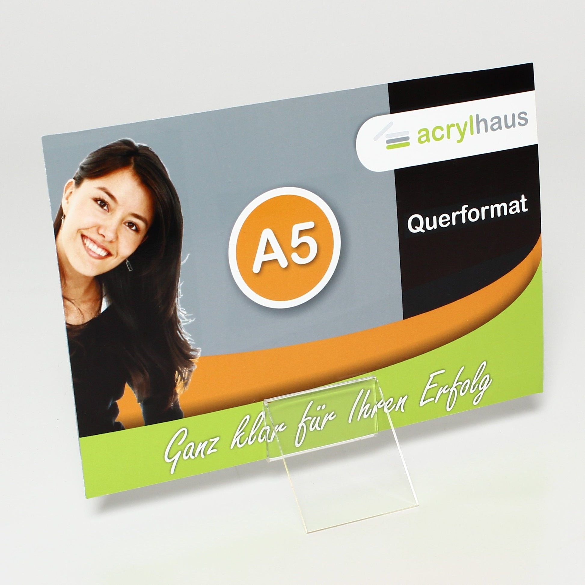 ["For the insertion of cards or laminated paper up to 1mm thickness","Width: 50mm","Material: Transparent acrylic glass","Application: Tabletop holder for menu cards, price labeling, etc.","Form designation: M-stand"]