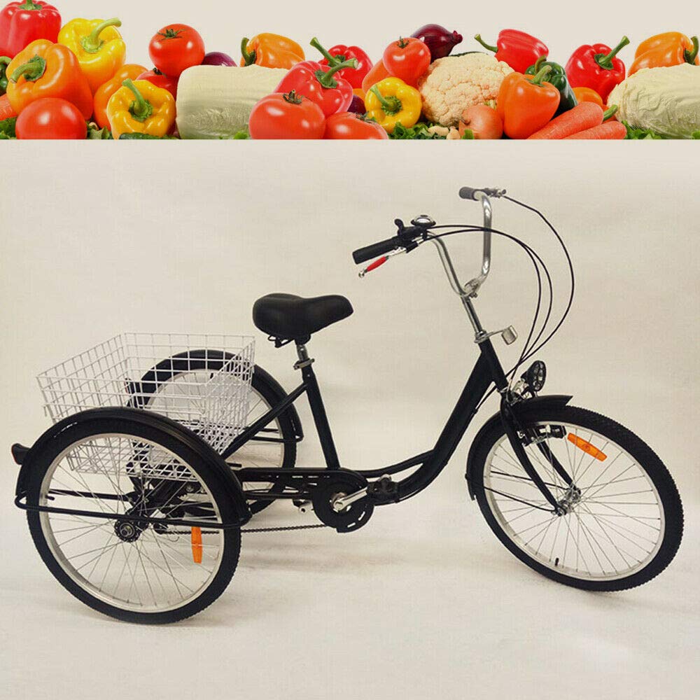 24"3 wheel tricycle for adults with light, 6-speed bike, shopping basket trike pedal bike, for outdoor shopping picnic (black)