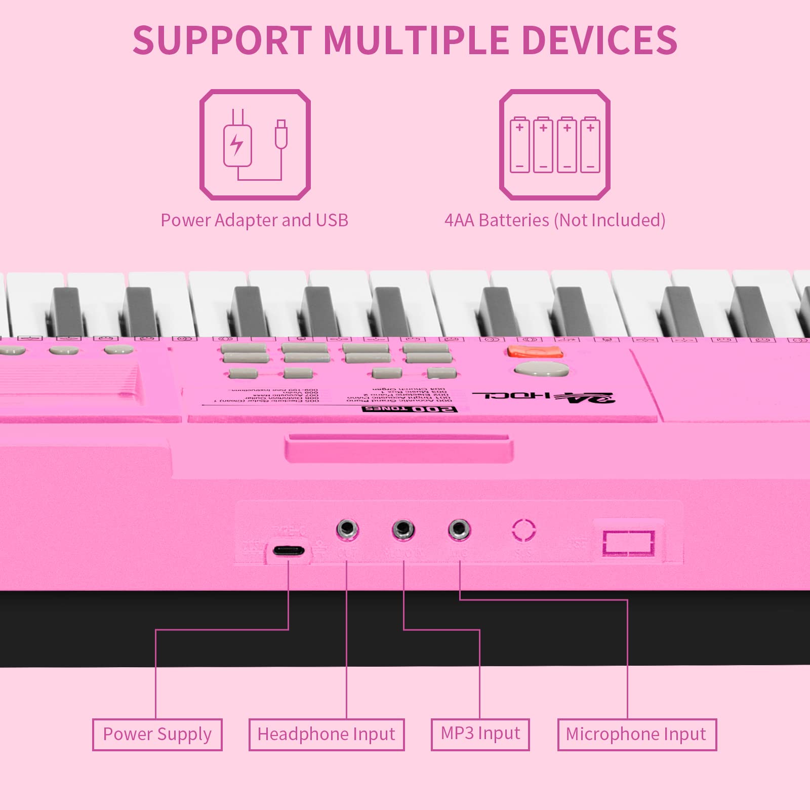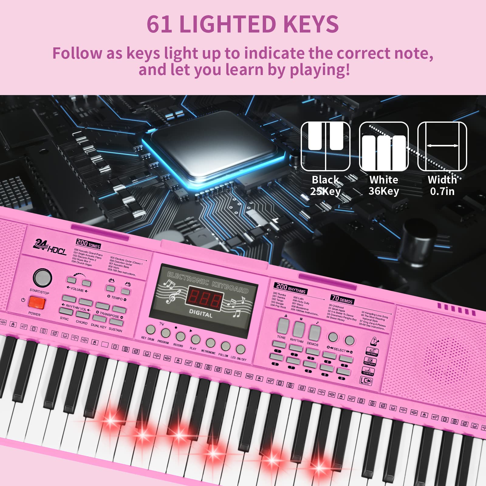 24HOCL Electric Pianos 61 Lighted Keys, Musical Digital Piano Keyboards 200 Rhythms LCD Screen for Kids Beginners Lighted Keys_2 Pink