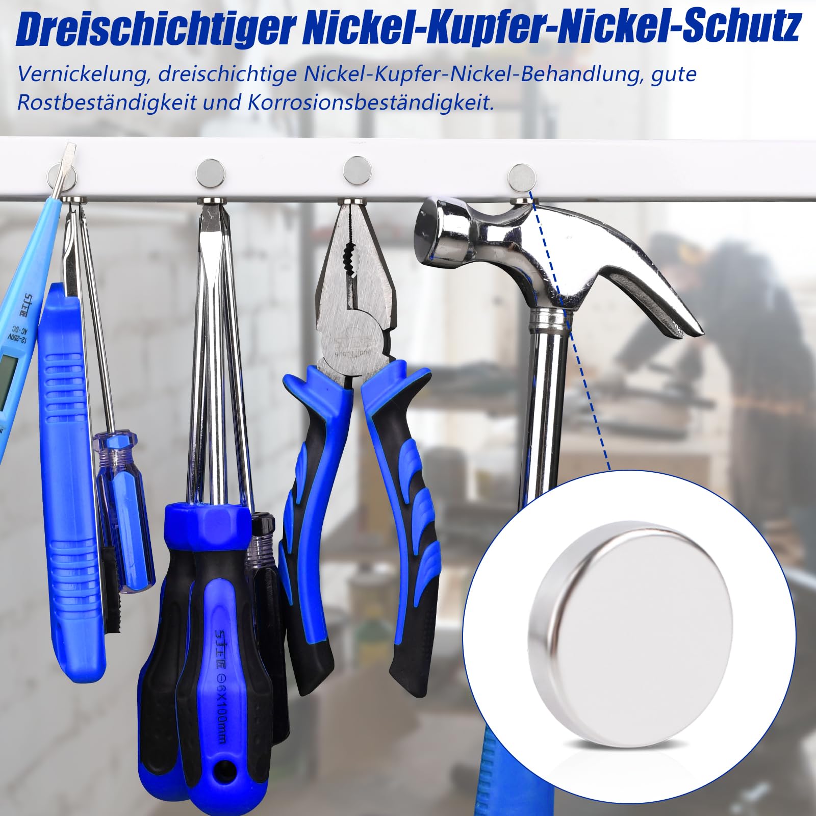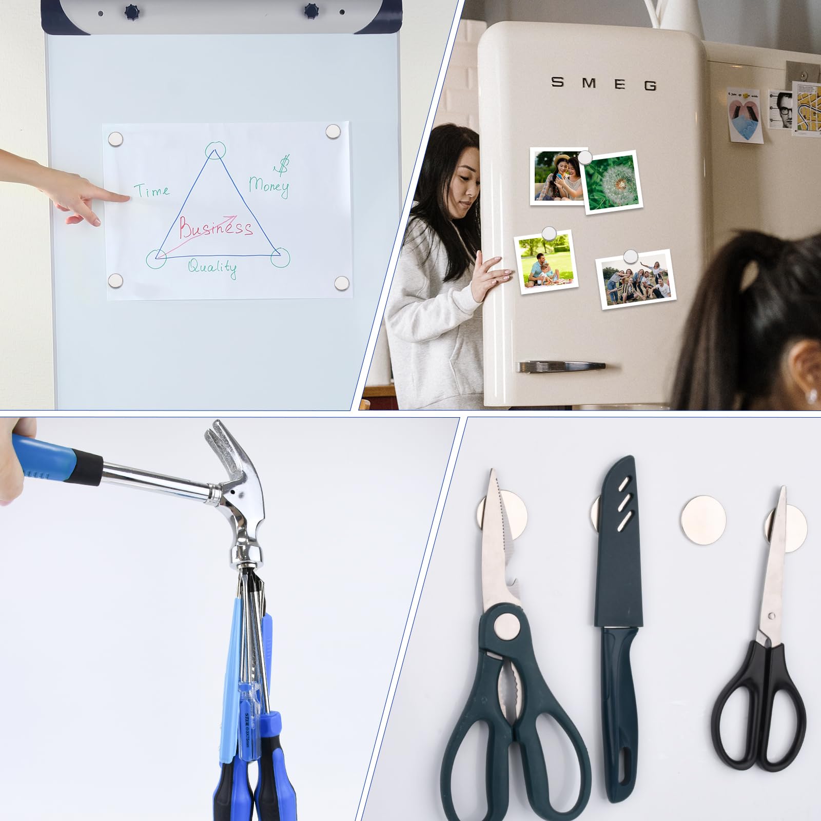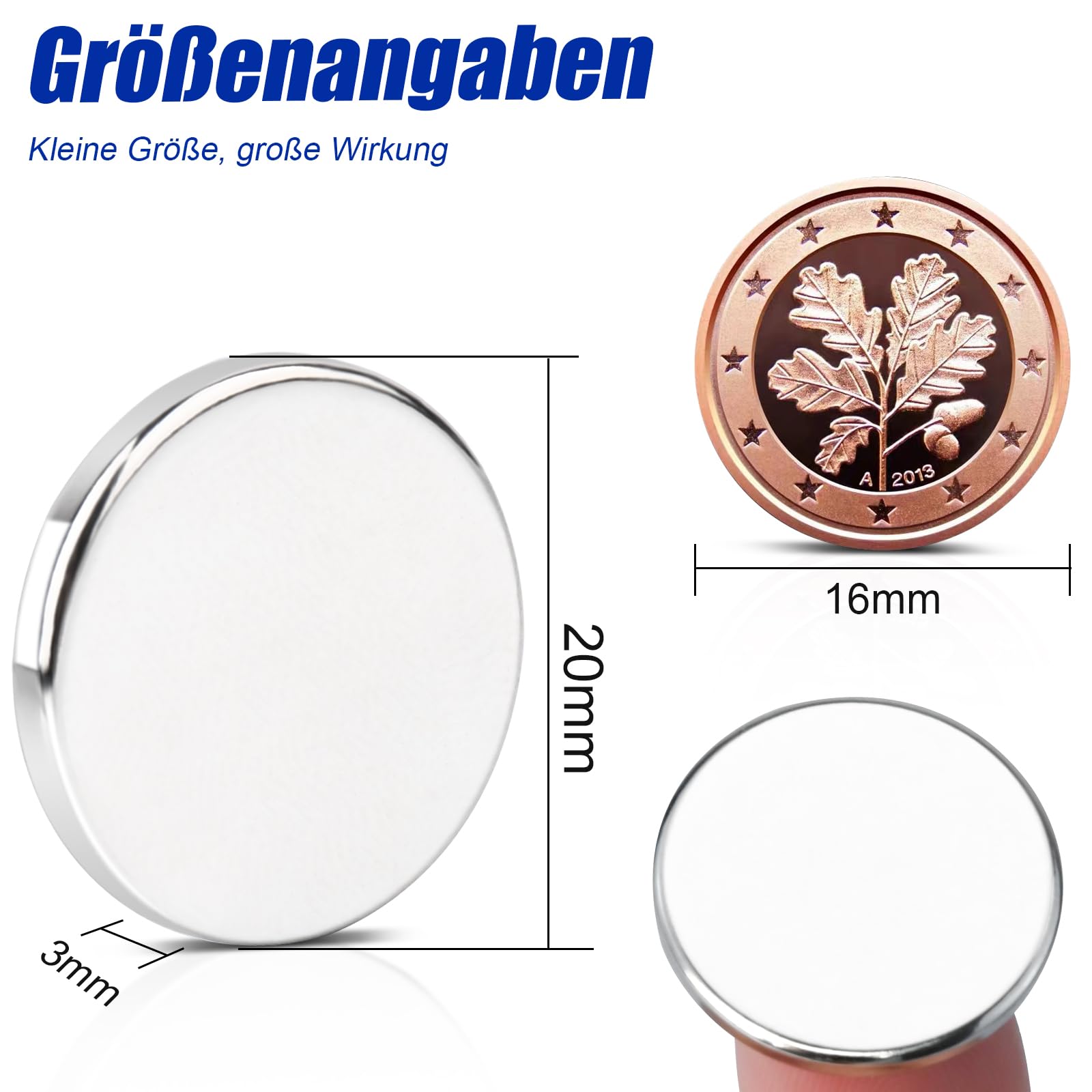 ["【Neodymium Magnets Extra Strong】This round strong magnet is made of high-quality Neodymium material, which provides strong magnetic force and durability. Magnets are small, take up no space, and are very strong. The pack includes 25 Neodymium magnets measuring 20 mm x 3 mm.", "【High Performance Magnet】The surface of the magnet for magnetic board is triple coated (Nickel+Copper+Nickel) to protect the small magnet from corrosion and improve its lifespan. Small rare-earth magnets have a smooth surface and can be easily moved without scratching refrigerators or other metal surfaces. These strong neodymium magnets can meet the various needs of your projects. They are truly great as refrigerator magnets, dry erase board magnets, pushpin magnets, whiteboard magnets, map magnets, memo or photo boards, or for crafting.", "【Durable Magnet】The sturdy disc magnet mini magnet is made of brushed neusilber material, which is more corrosion-resistant and anti-oxidative. Neodymium disc magnets have a smooth and rust-free surface and can be attached with glue to any surface or directly to metal surfaces. Additionally, the small magnets leave no traces or stains when moved over metal or other surfaces.", "【Versatile Use】These round magnets are perfect as whiteboard magnets, pushpin magnets, refrigerator magnets, office magnets, whiteboard magnets, dry erase board magnets, map magnets, memo or photo boards, for crafting, and more. Magnets can also be used on magnetic doors, bulletin boards, refrigerators, office cabinets, kitchens, offices, and other metal surfaces. You can let your creativity run wild in using these mini magnets in other places.", "【Professional Brand】We are a professional magnet supplier and offer magnets in various sizes. If these refrigerator magnets do not meet your expectations, please contact us and we will do our best to provide you with a satisfactory solution. Note: Small magnets are not toys, please keep away from children."]