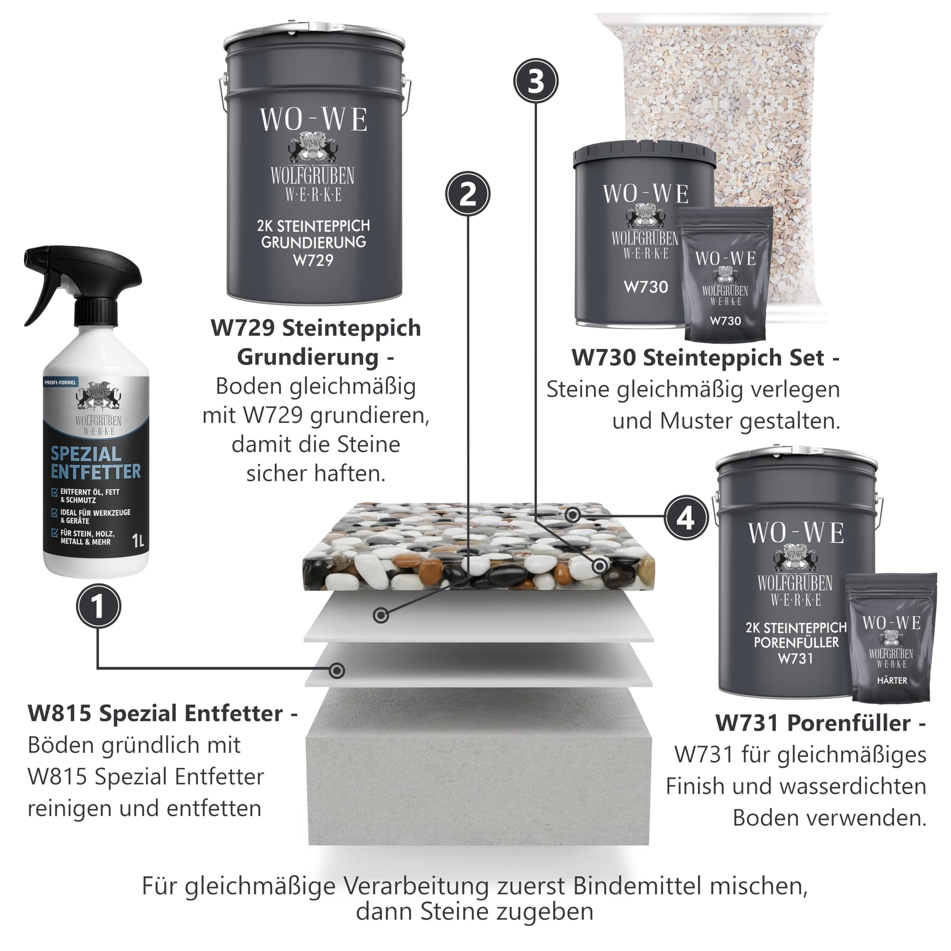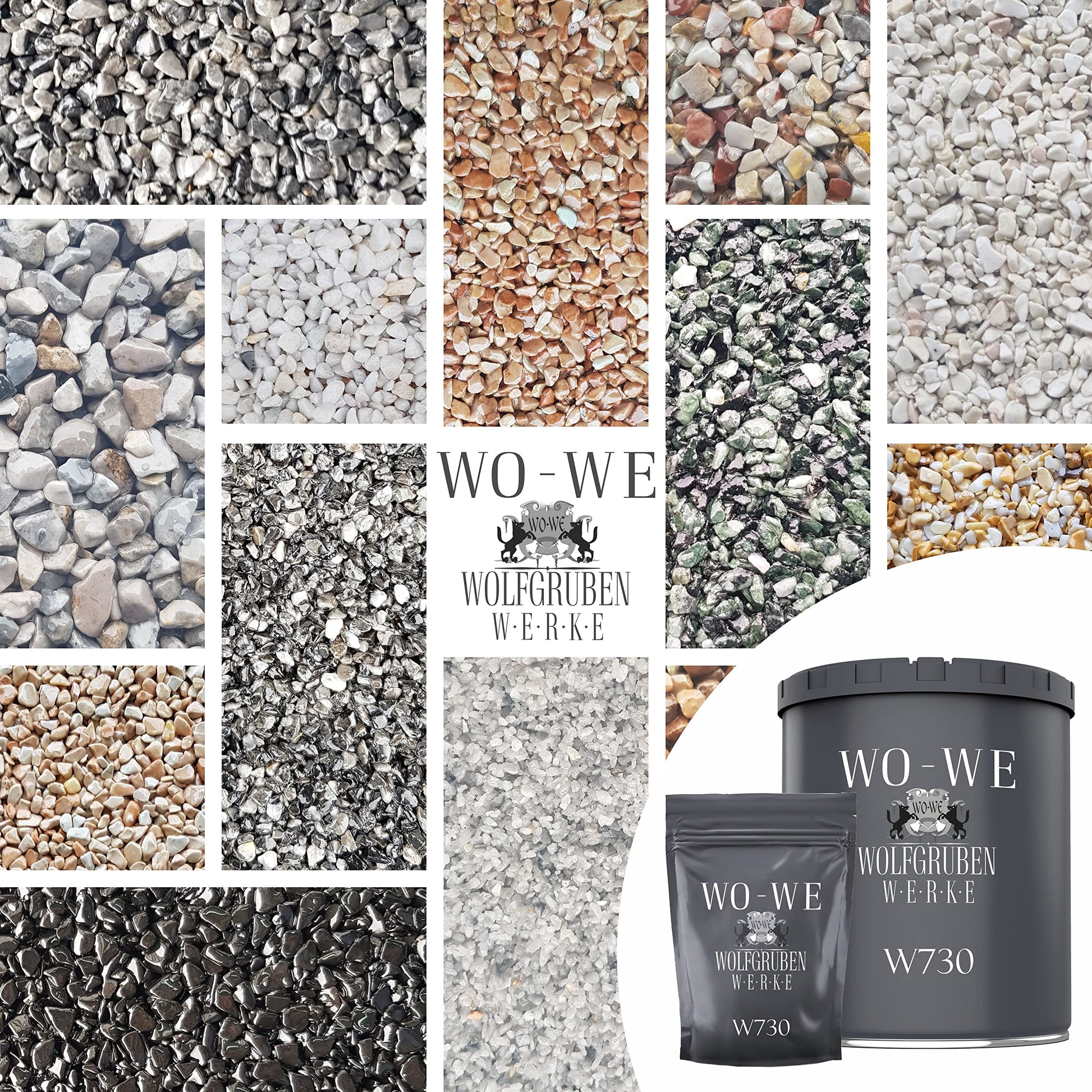 ["Complete set: Includes 55 lbs of high-quality marble chippings and 3.3 lbs of strong 2K binder for a secure, durable, and professional application.","Quality materials: Exquisite natural stones from Italy in premium quality combined with durable binder made in Germany.","Versatile: Suitable for concrete, screed, tiles, natural stone, and many other solid surfaces indoors and outdoors.","High yield: With a grain size of 1-4mm, a 55-lb bag covers approximately 21 sq ft reliably, evenly, and permanently.","Wide range of applications: Ideal for terraces, balconies, gardens, pool edges, living spaces, commercial areas, or covered outdoor areas.","Comfortable & functional: Pleasant to walk on barefoot, elastic, heat-insulating, and breathable with an open structure that is anti-slip.","Extremely durable: Weather-resistant, frost-proof, anti-slip, and easy to clean and maintain.","Quickly loadable: Solvent-free and fully walkable and loadable permanently after just 24 hours.","Permanently beautiful: Prevents unsightly joints, worn edges, or cracked tiles and ensures a modern, elegant surface.","Individual design: Available in many colors and grain sizes for a particularly natural, vibrant, and high-quality appearance."]