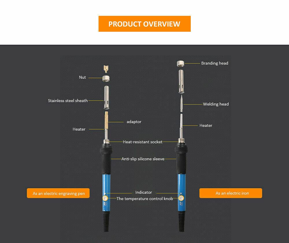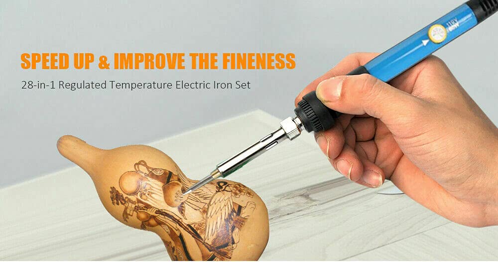 28-piece 60W wood burning pen branding iron pyrography stencil engraving set.