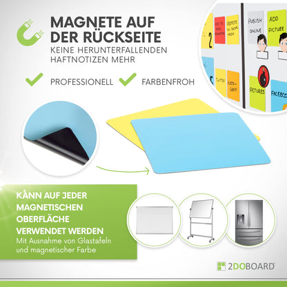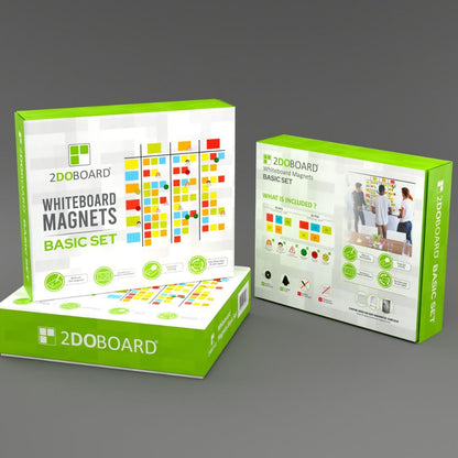2DOBOARD Scrum and Kanban Board Set for Whiteboard - Writable magnets, magnetic lines, avatar, danger, and smiley magnets for labeling - Basic set 122 pieces