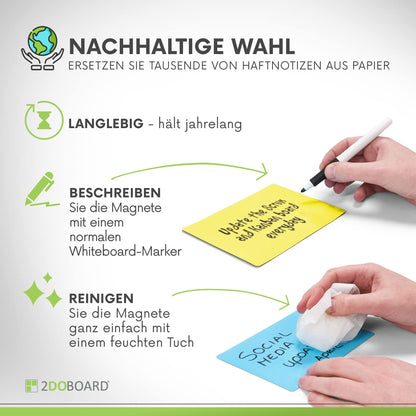 "SEIEN SIE ÖKOLOGISCH: SCHLUSS MIT HAFTNOTIZEN - Herkömmliche Haftnotizen fallen immer wieder herunter und lassen sich nur einmal verwenden. In unserem Werkzeugsatz ist die beste Alternative enthalten: Wieder beschreibbare Magnete. Damit können Sie einfach immer und immer wieder schreiben und reinigen, ohne dabei der Umwelt zu schaden."