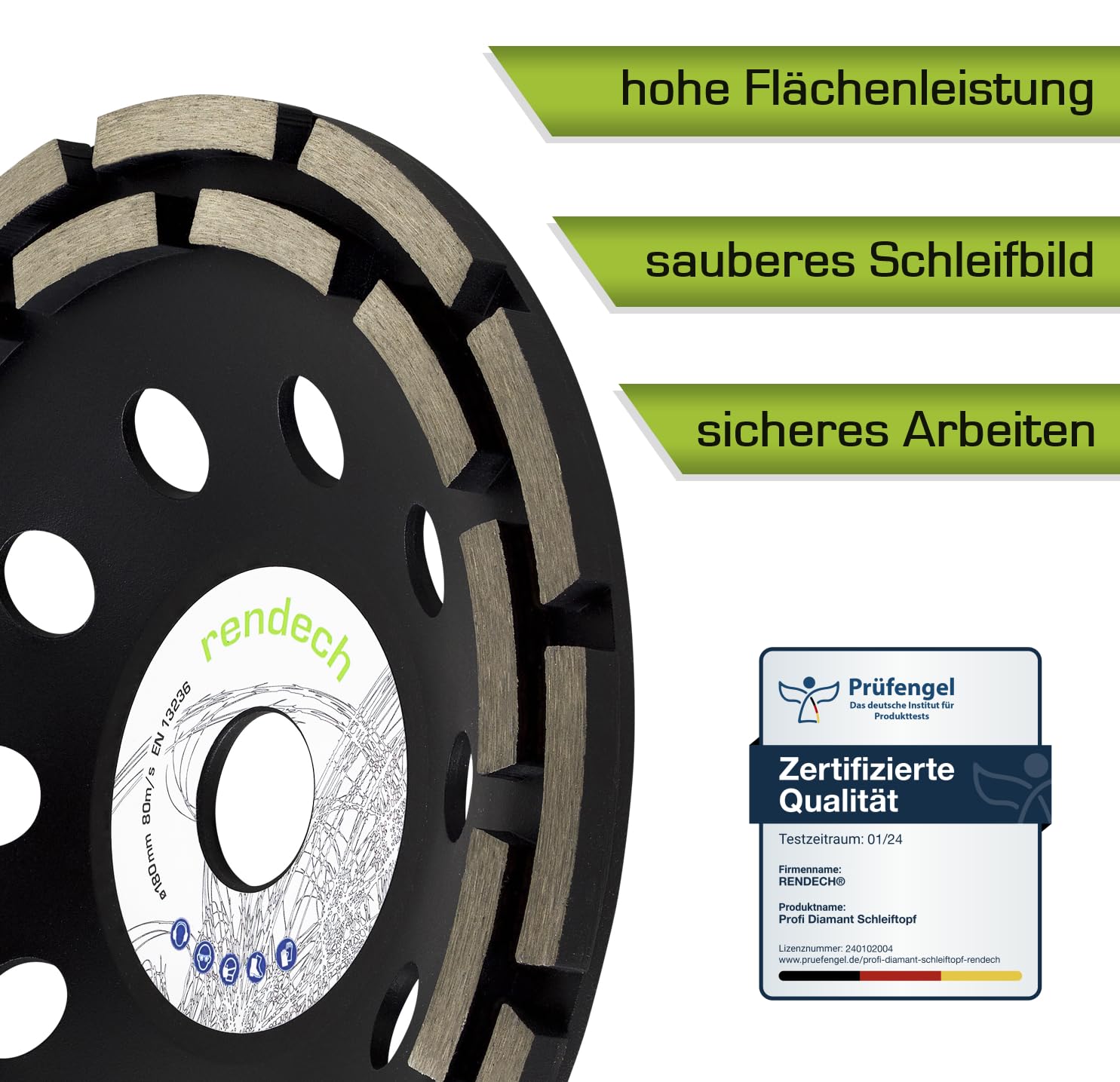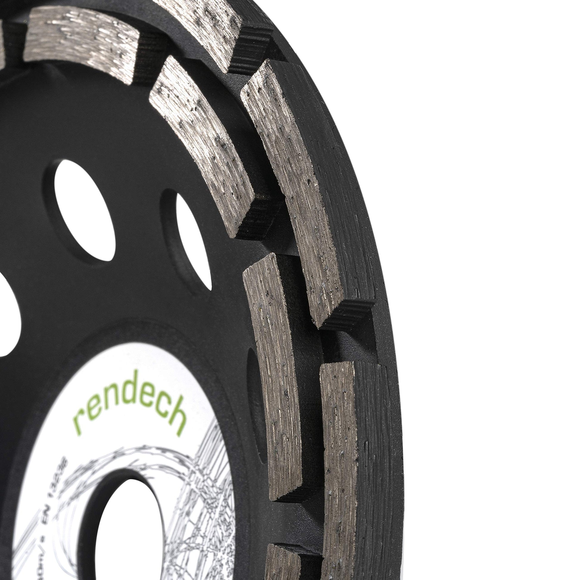 2x Professional Diamond Grinding Cup 180mm black for concrete, stone, tile adhesive, and more. - Concrete Grinding Disc 180x22.23mm for angle grinder | rendech®