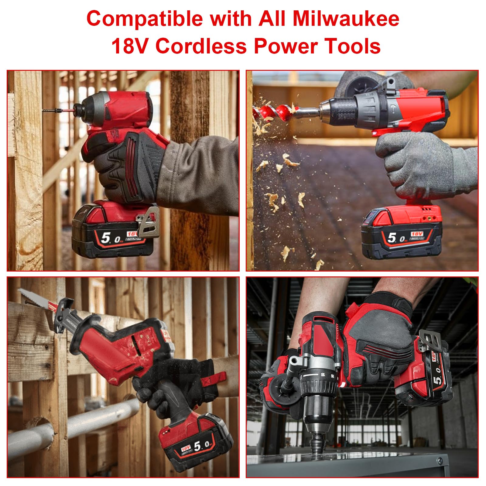 ["Battery Type: Lithium-ion | Voltage: 18V | Capacity: 5.0Ah/5000mAh, Replacement for Milwaukee M18, Premium Lithium Battery delivering Super Power.",