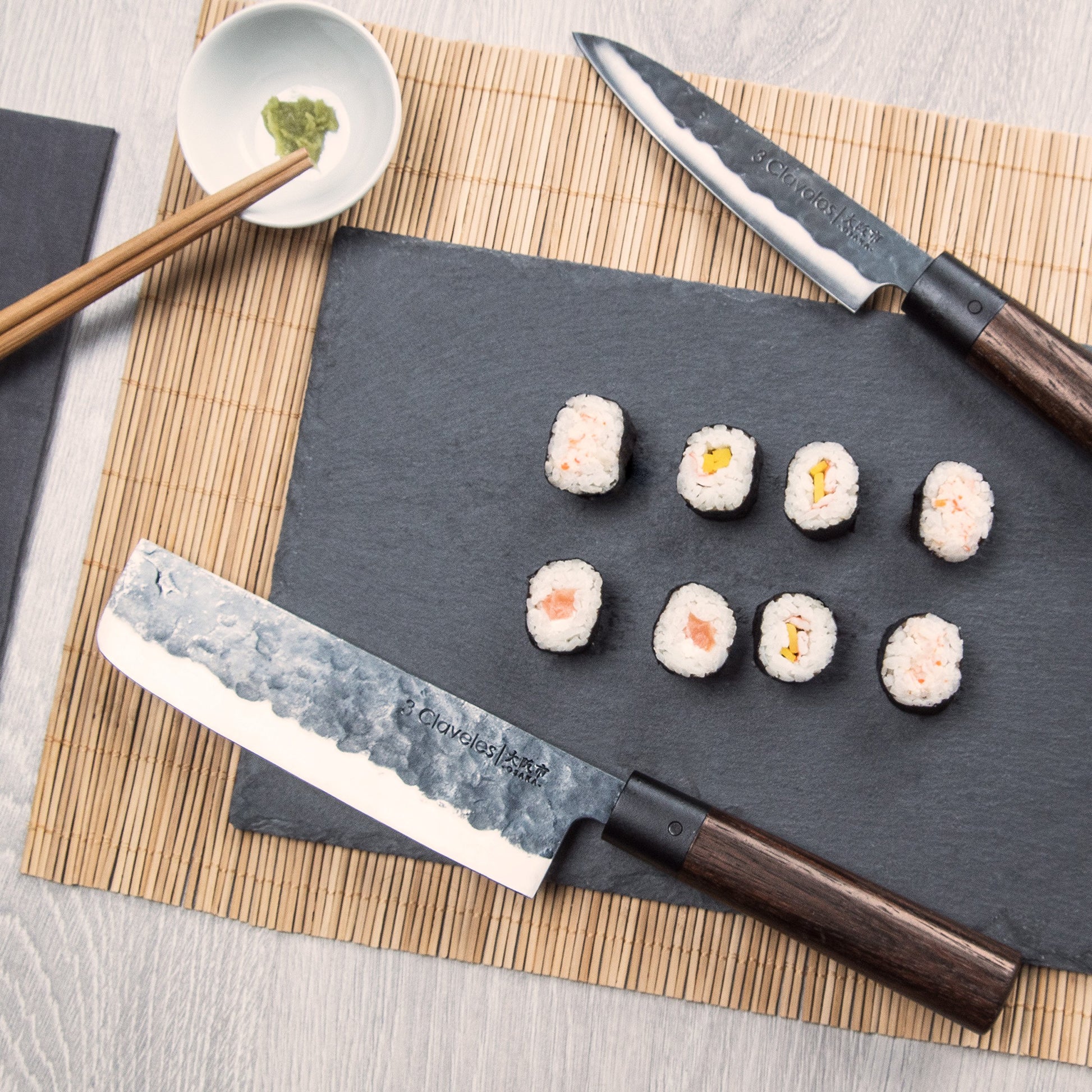"Japanese Professional Knives 7 inches","Stainless Steel - Handle made of Granadillo Wood","Unique hand-forged blades","Bolster and Virola stainless"