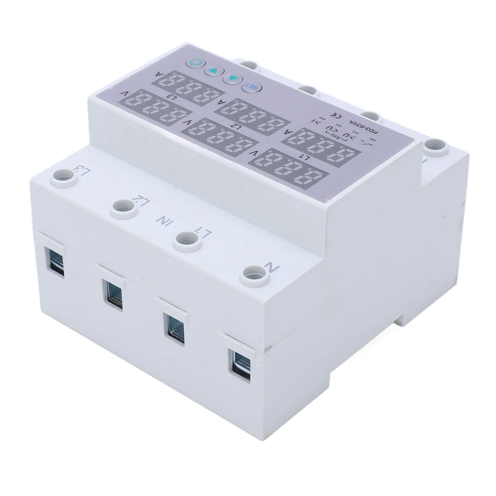 3-phase DIN rail voltmeter power meter, AC 390-500V digital ammeter automatic overvoltage overcurrent protection, 3-phase watt-kWh-ampere electricity tester (40A)