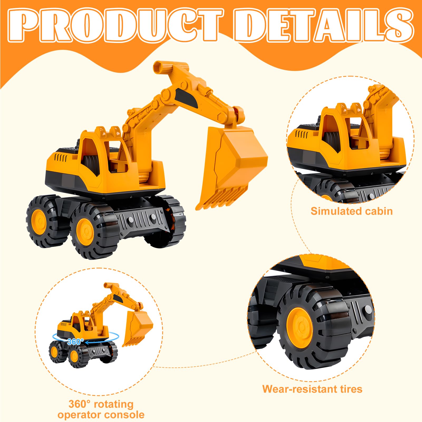 ["【Safe and Durable Materials】The toy car is made of organic plastic. For children, these beach toy cars are very hand-friendly and can withstand a lot of pressure, making them sustainable. They are gifts for birthdays and other gifts for girls and boys. The size of the toy is perfect for children's small hands, a good choice for summer beach toys.","【Kids Sand Toy Set】This sturdy dump truck can transport stones, sand, debris, and more. This toy car can improve hand-eye coordination and fine motor skills. It can provide children with a lot of fun and promote children's imagination and creativity.","【Indoor and Outdoor Beach Toys】The excavator sandbox leaves no marks on the floor and does not rub off. Therefore, dump trucks are also suitable for indoor and outdoor use, whether in children's rooms, gardens, or sandbox playgrounds. Dive into creative play on your sandbox farm with fully functional elements, including a moving roller, shovel, front loader, and arm. It's ready for authentic construction action.","【Best Summer Gift】It provides everything children actually need when playing outdoors. Each toy car has moving parts, and children can dig sand, transport sand, and so on. Children can unleash their creativity and imagination and build their own castle with friends or parents.","【Perfect Summer Beach Gift for Kids】This sandbox toy set is suitable for the beach, sandbox, swimming pool, lake, garden, backyard, etc. It not only improves their practical skills and stimulates creativity but also enhances parent-child interaction and ensures a great summer and vacation. It is the best gift for children's birthday gifts, party gifts, outdoor beach gifts, pool toy gifts."]