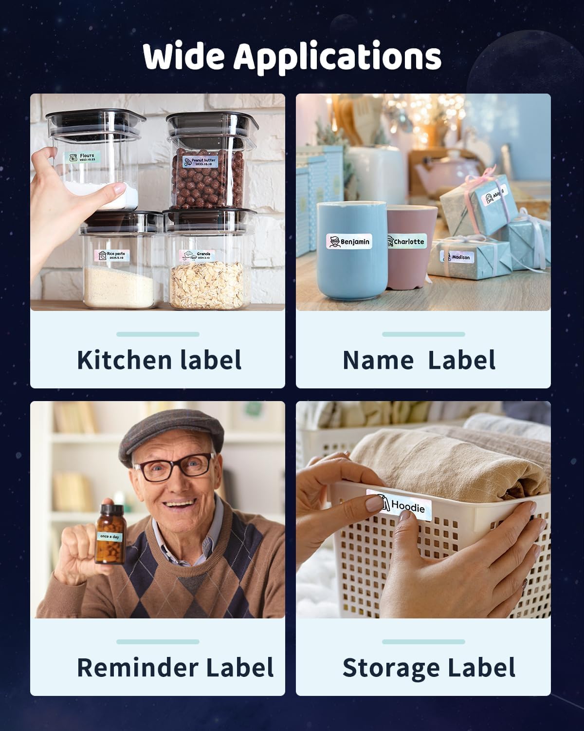 ["3 Rolls Multifunctional rectangular pattern label, Product size - 12 mm * 40 mm; Compatible with Phomemo D30 label printer. Number of labels per roll: 160. There are three rolls (Colorful Starry Sky)","Thermal transparent labels can be applied to envelopes, boxes, brochures, CD cases, plastic containers, promotional materials, or packaging. It is very suitable for labeling candles, bathrooms, and metal bottles, etc. It is very suitable for labeling items for sale, identifying items in containers, marking drawers and shelves, etc","Phomemo's self-adhesive multifunctional labels are waterproof, oil-resistant, wear-resistant, and highly viscous. Can be firmly attached to envelopes, paper, plastic, glass, and metal","High-quality, high-resolution printing - Phomemo Label Thermopaper Direct thermal printing technology delivers clear letters without the need for expensive ink or toner","Easily create personalized labels. Phomemo offers thousands of free designs or templates to choose from. You can edit and create your own personalized label designs"]