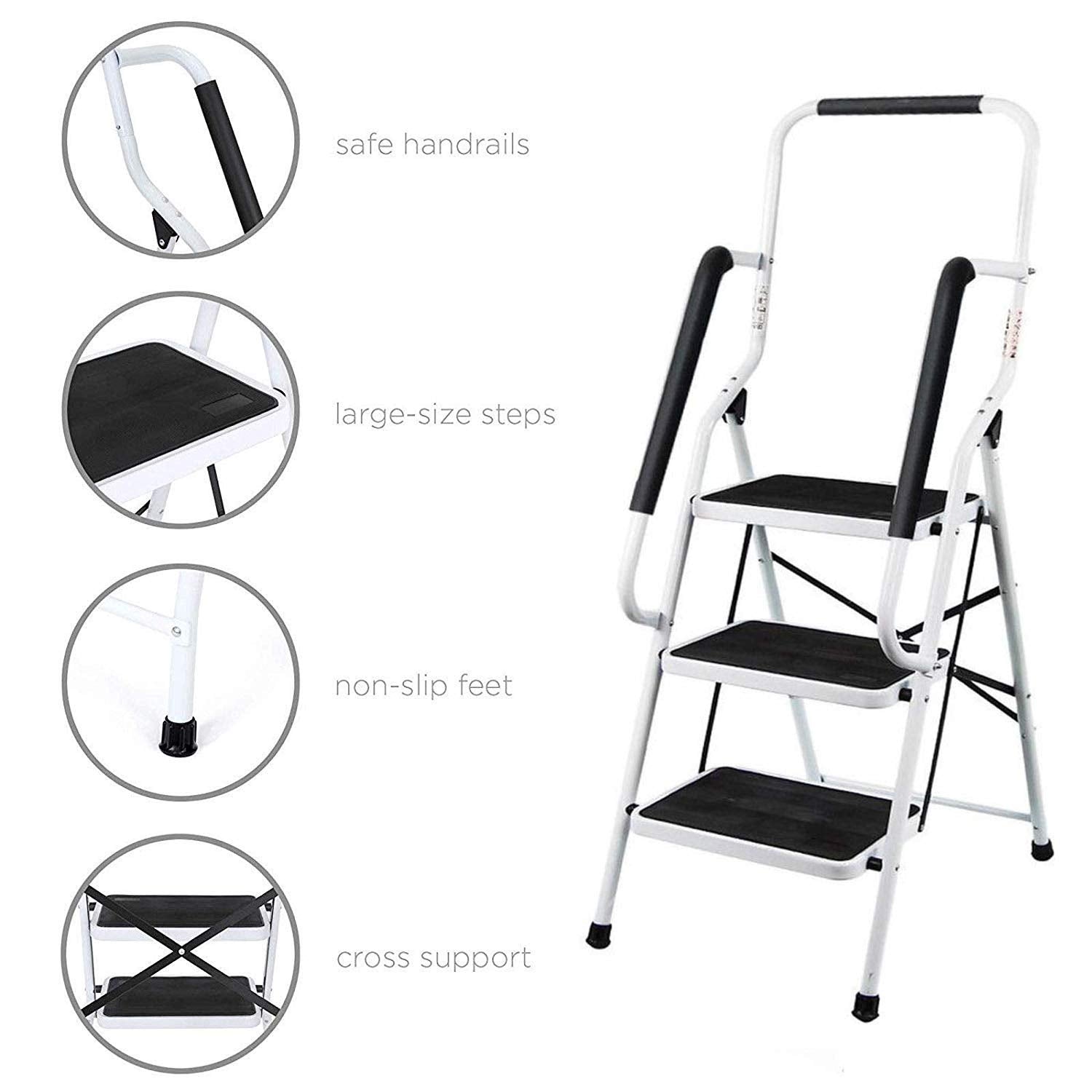3-step step ladder with handrail Foldable Safety Non-slip Lightweight 8.5 kg for home office warehouse Maximum load capacity 150 kg