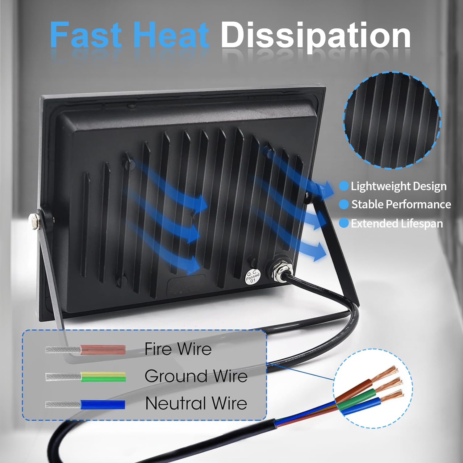 ["【LED ultra bright lighting】 The LED floodlight uses 360 lamp beads, and the 300W floodlight can produce 30,000 lumens of light, with a 120° wide beam distribution and a high brightness of 6500K cool white light. It has a 55cm cable and uses a 180° adjustable bracket that can easily adjust the light angle as needed.","【IP66 waterproof and durable】 Our LED outdoor floodlight is made of die-cast aluminum and tempered glass. The waterproof feature of the outdoor light has been improved to IP66, moisture and dust proof. The floodlight can be safely and stably used outdoors in rain, sleet, high temperatures, or low temperatures.","【Good heat dissipation】 The LED outdoor floodlight adopts convection design, ultra-thin body design, and the back streamlined design can provide good heat dissipation and extend the lamp life.","【Wide application】 LED floodlights have a 120° beam angle, wide light distribution, and high brightness, and are applicable to gardens, yards, garages, roofs, courtyards, parking lots, squares, and docks.","【Efficient service】 Our floodlight has passed CE and ROHS certification, and the average lifespan of LED is more than 50,000 hours. For any questions, please contact Toopettp customer service"]