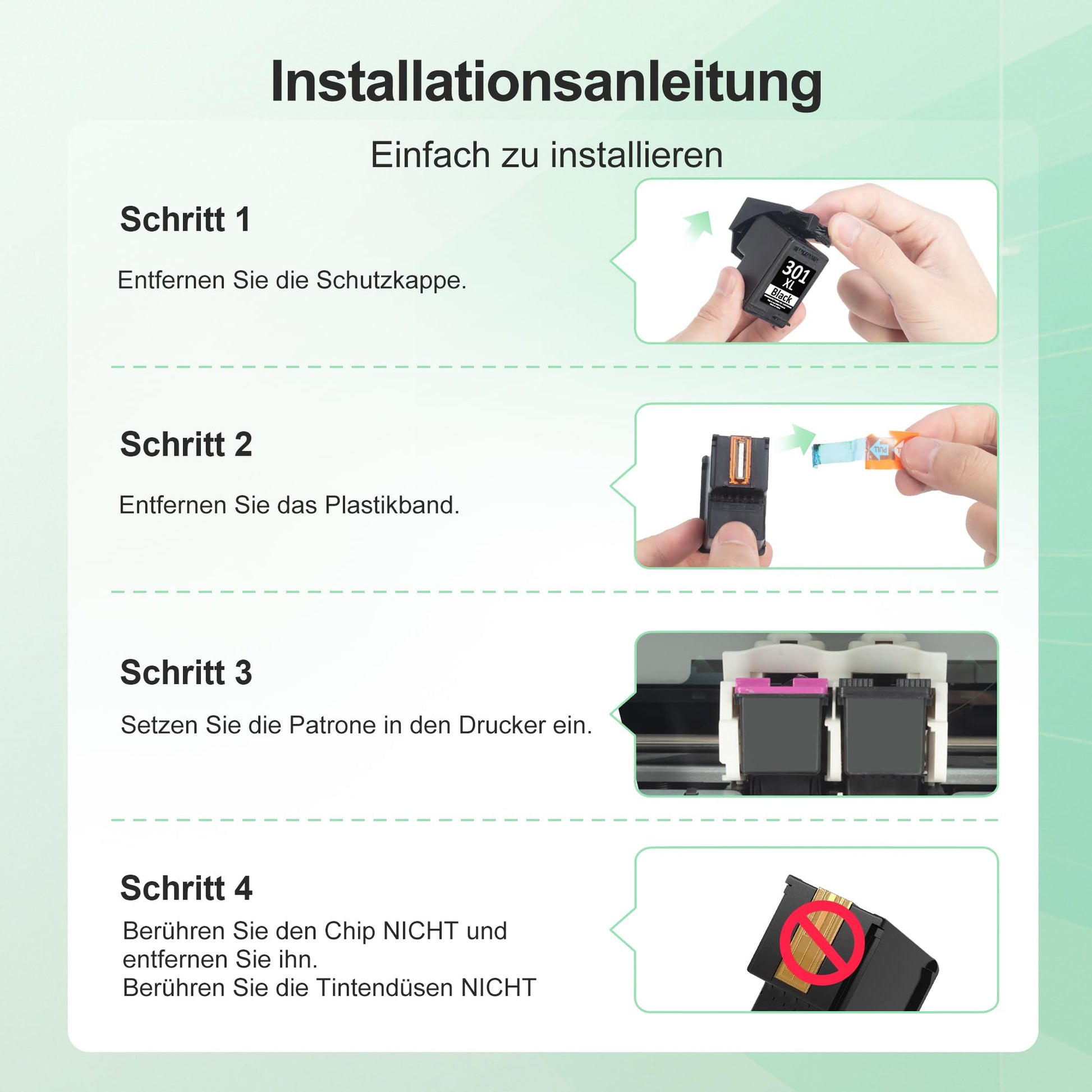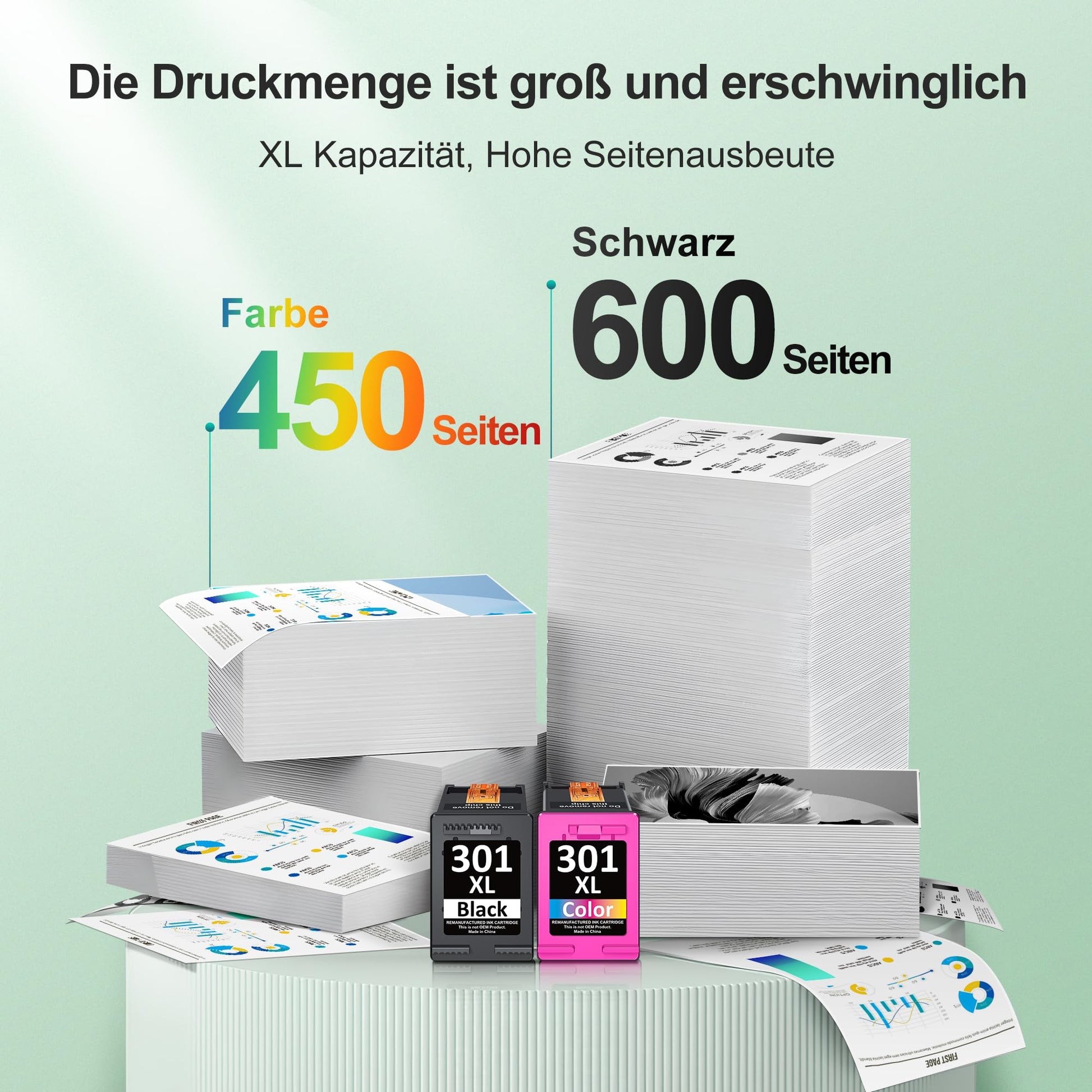 ["301XL Multipack replacement for HP 301 printer cartridges for HP 301 XL cartridges Black for HP Envy 4500 5530 4504 4502 Deskjet 2540 2544 2549 3050 Officejet 4630 4632 2620 (1 Black, 1 Color, 2-Pack)"]