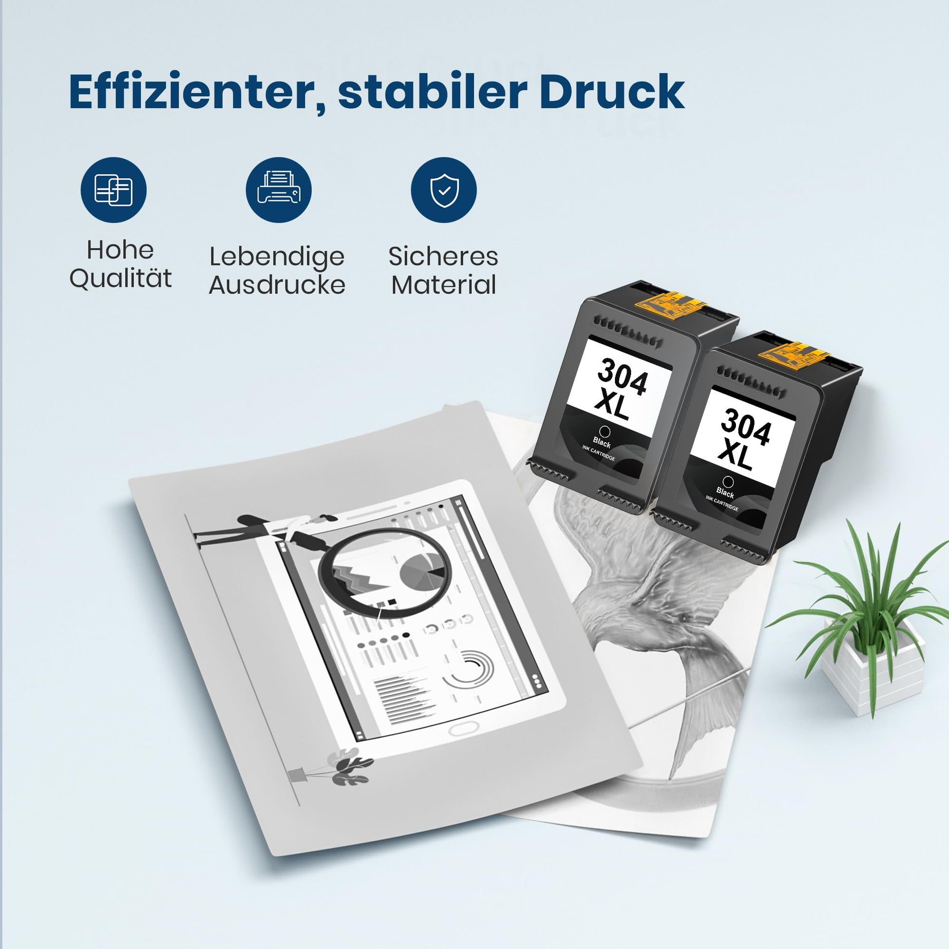 304 XL Black Ink Cartridges Multipack Compatible for HP 304 304XL Black Ink Cartridges for HP Envy 5000 5030 5010 5020 5032 Deskjet 3750 3760 2620 2622 2630 3720 3730 3760 3762 3735 (2 Black)