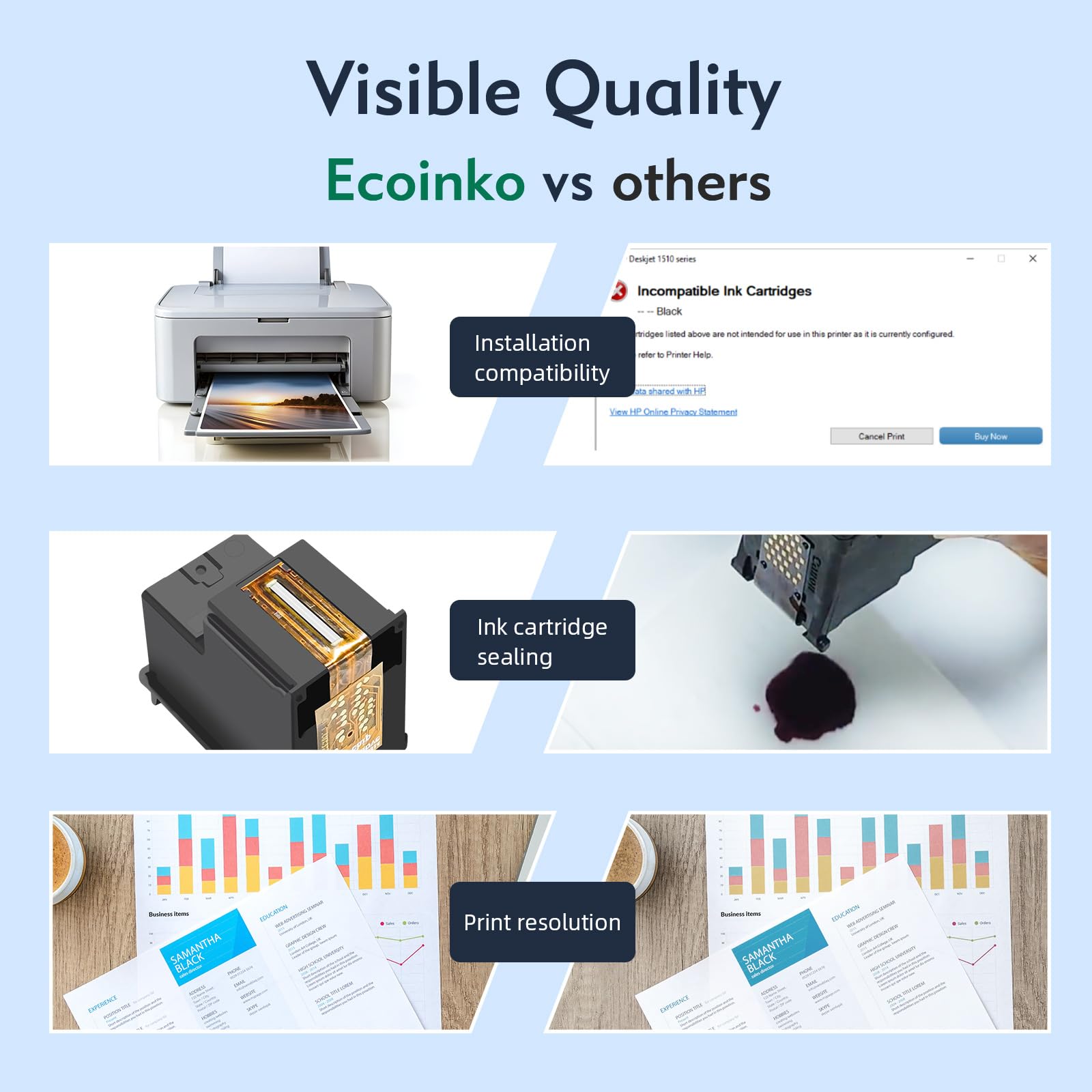 [Please Note] Our 305 xl black and 305 printer cartridges color are made from recycled original ink cartridges that have undergone rigorous cleaning and injection of high-quality new printer cartridges 305 ink. The factory has passed ISO 45001 certification and ensures high standard management in the production process. You can use it with confidence, our printer cartridge 305 black and cartridges 305 color have excellent compatibility and performance."