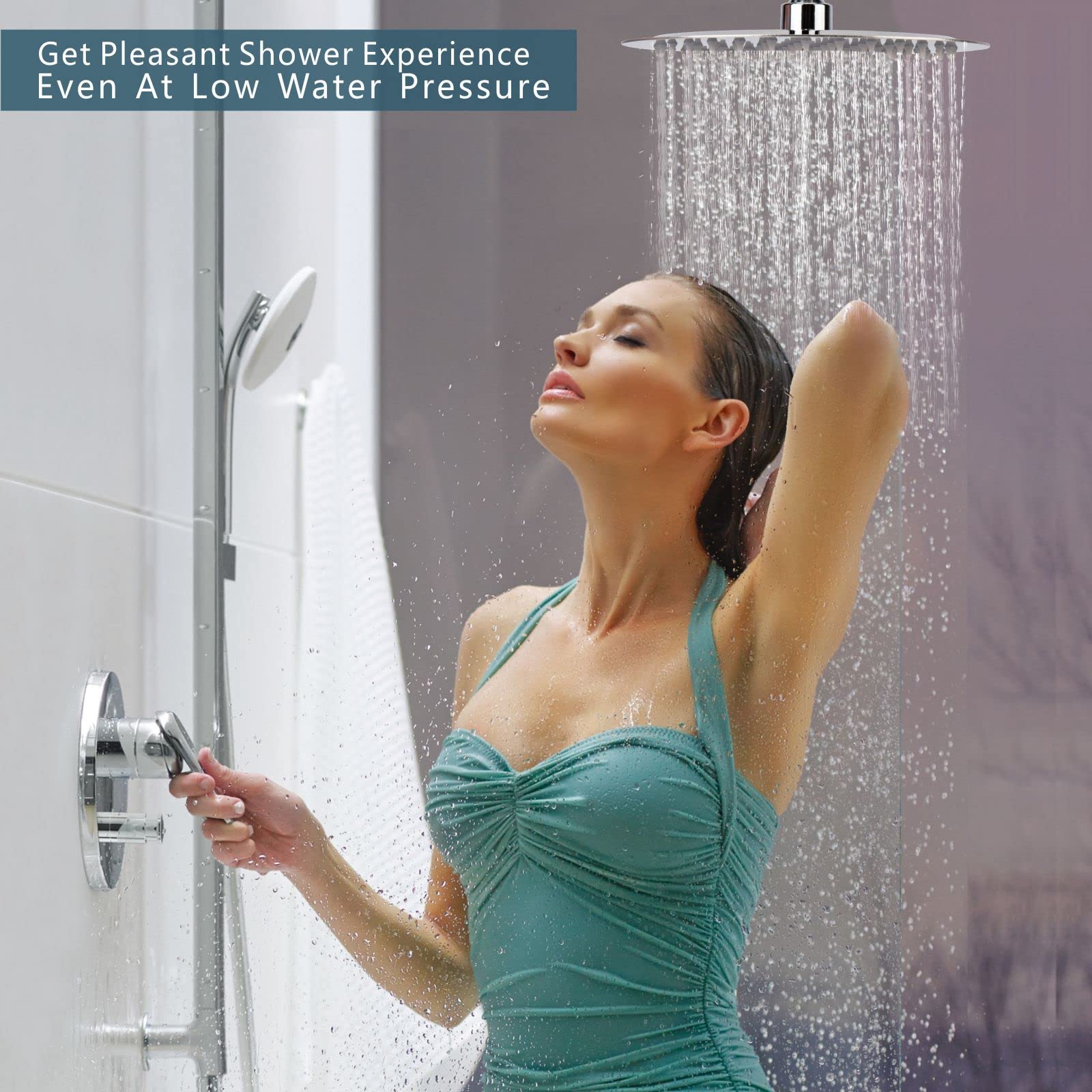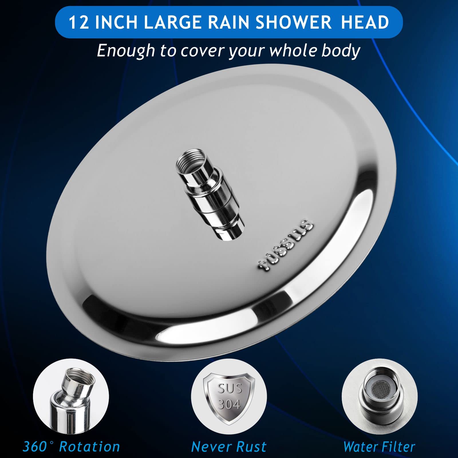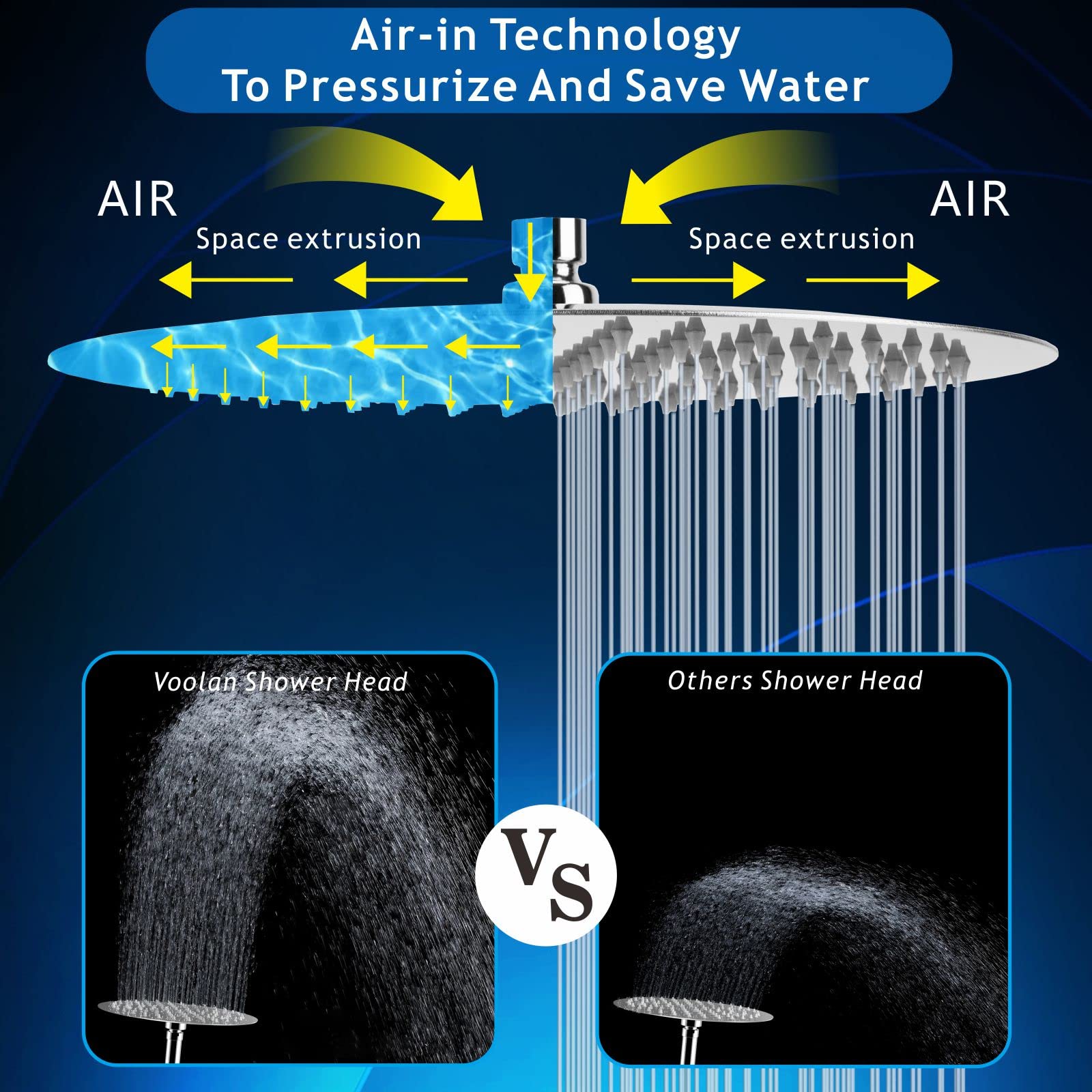 ["Stylish and Elegant Look, High-Quality Shower Head - Most shower heads on Amazon are made of cheap chrome-plated plastic. The 12-inch wide Voolan shower head is made of 100% high-quality stainless steel, durable and sturdy, with the highest rust resistance. With its chrome surface, this shower head is a great addition to any bathroom decor.","Enjoy a beautiful large rain shower even with low water pressure. - The combination of ultra-thin design and air intake technology results in high pressure and large flow rates. Large shower heads can provide you with a rain shower experience even with low water pressure. With the swivel ball joint, you can adjust and secure the shower head at any angle.","Nozzles with Automatic Cleaning Function - The 144 silicone nozzles prevent the accumulation of limescale, saving you the hassle of maintenance. After a tiring day, men and women, young or old, can relax in the shower as if experiencing a comfortable spa at home.","Fast and Easy Tool-Free Installation - Install it in just minutes on the wall or on the ceiling shower arm. The G1/2" thread can be connected to a standard shower arm. A small wrench is included for tightening the screws. (Shower arm not included)","Satisfaction Guarantee - All Voolan shower heads undergo quality assurance. Voolan has been dedicated to developing bathroom products for many years. We offer higher quality products at a more affordable price."]