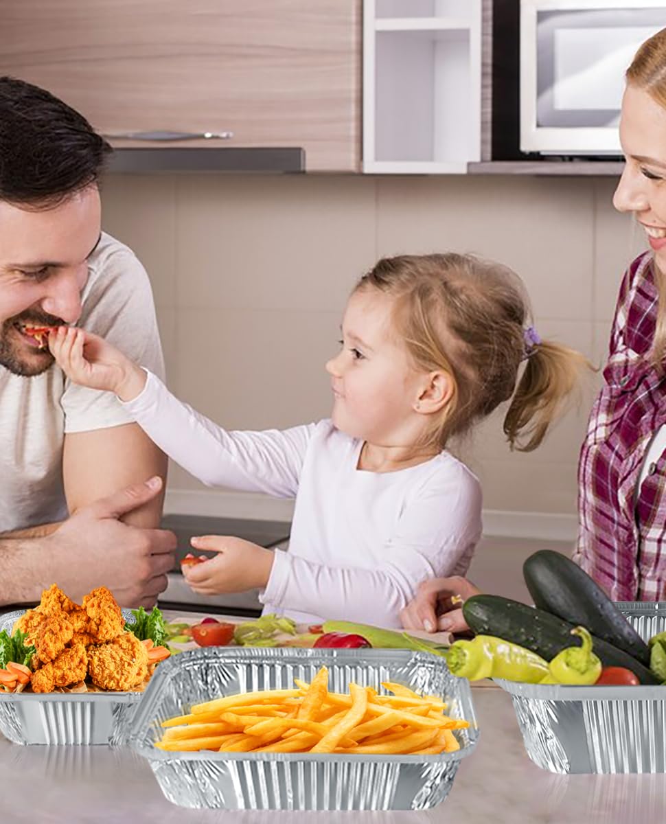 ["HIGH-QUALITY ALUMINUM TRAYS: Our aluminum foil grill trays are made from high-quality, food-safe aluminum foil that is guaranteed to be stable and durable, meeting safety and non-toxicity standards. Aluminum grill trays have good heat conduction and cold resistance and are not easily broken or deformed.","MULTIPLE SIZES: Our product set includes 30 pieces of aluminum grill trays, 10 pieces of 255*190*60/1750ml, 10 pieces of 185*132*50/700ml, and 10 pieces of 175*110*40/410ml. Whether you are hosting a large party or enjoying a private delicious meal, these various sizes of aluminum trays will meet your individual needs in different scenarios.","VERSATILE APPLICATION: Multipurpose aluminum grill trays offer more options for your cooking experience. Whether you are celebrating Christmas or Thanksgiving, these aluminum trays are perfect for the occasion and enhance the festive flavors. Buffets, receptions, banquets, baking, picnics, and barbecues, these aluminum grill trays fit well and add style to all your occasions.","RECYCLABLE MATERIAL: These aluminum grill trays are made from recyclable aluminum foil to minimize resource consumption. After use, you can simply recycle the aluminum tray and contribute to resource recycling. By choosing environmentally friendly aluminum foil materials, you can reduce plastic waste during cooking and packaging.","QUALITY SERVICE COMMITMENT: We are always committed to providing our valued customers with excellent service and quality products. If you have any questions or concerns during the process, please do not hesitate to contact us. We will offer you a satisfying solution within 24 hours."]
