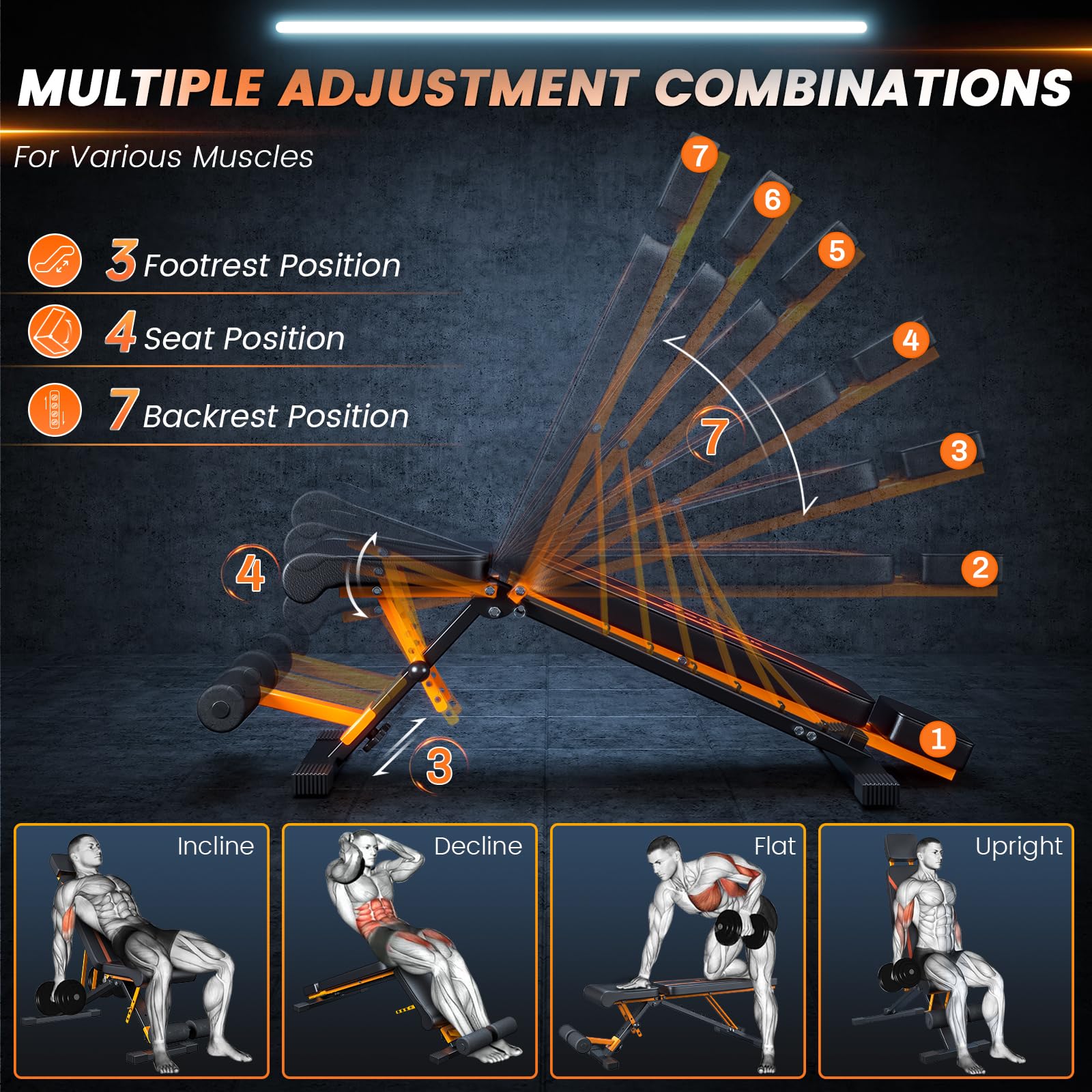 350KG folding weight bench - Bonvork workout bench with 1.6MM Thickened Steel, Incline bench for home gym, adjustable weight bench, Flat Decline Bench Press Bench (with headrest)
