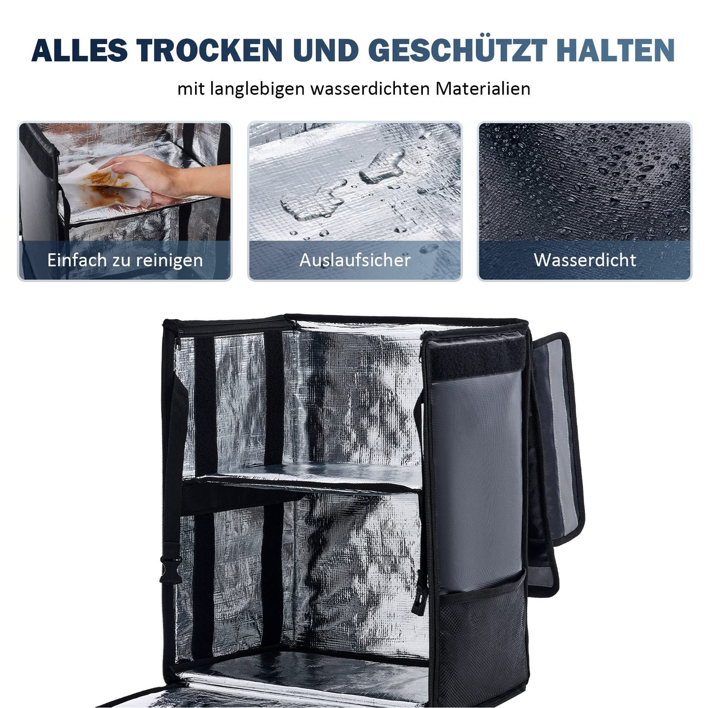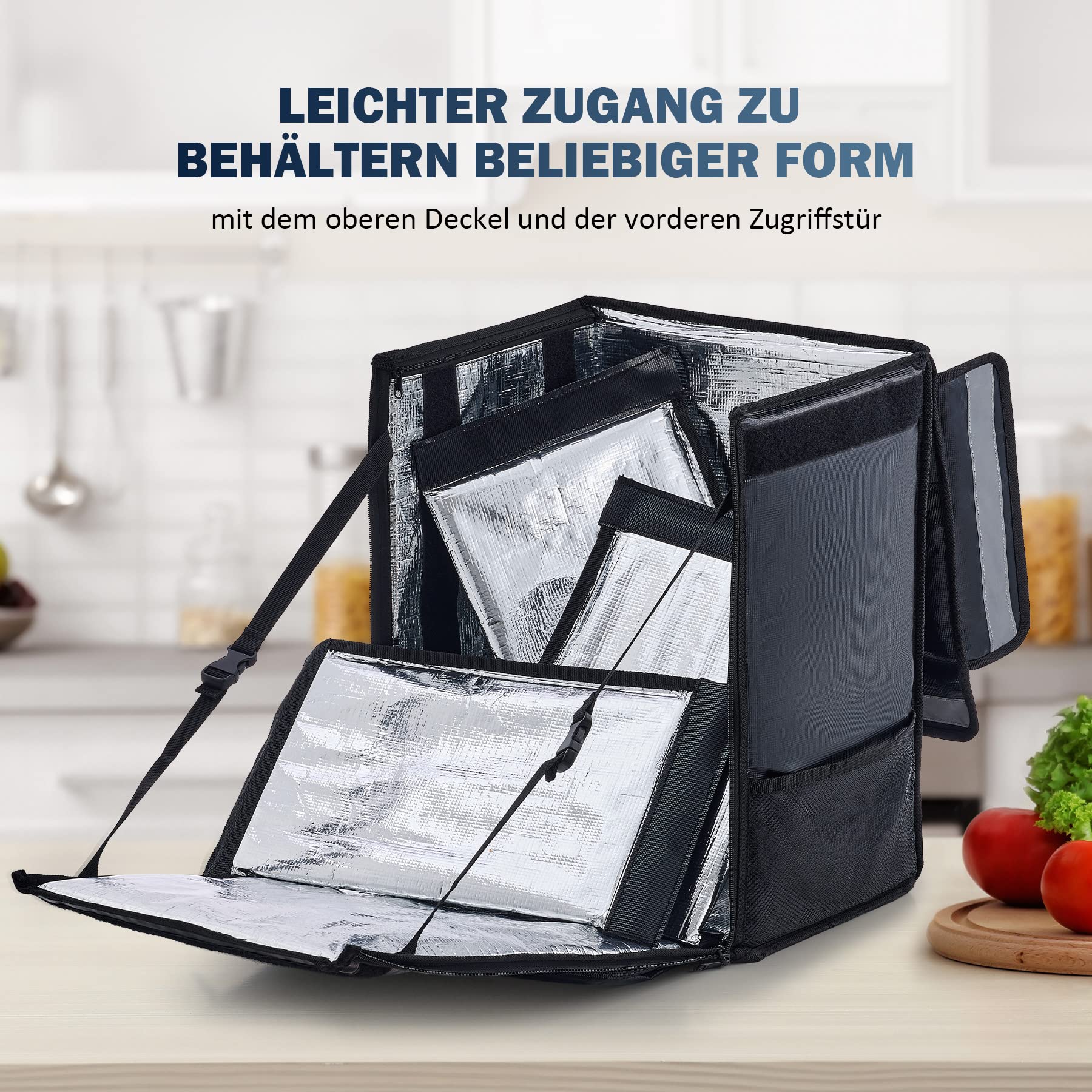 "Large Capacity - Our 35-liter food delivery bag is spacious enough to fit pizza boxes, large drinks, and takeout bags with 3 adjustable dividers for organized food placement.",