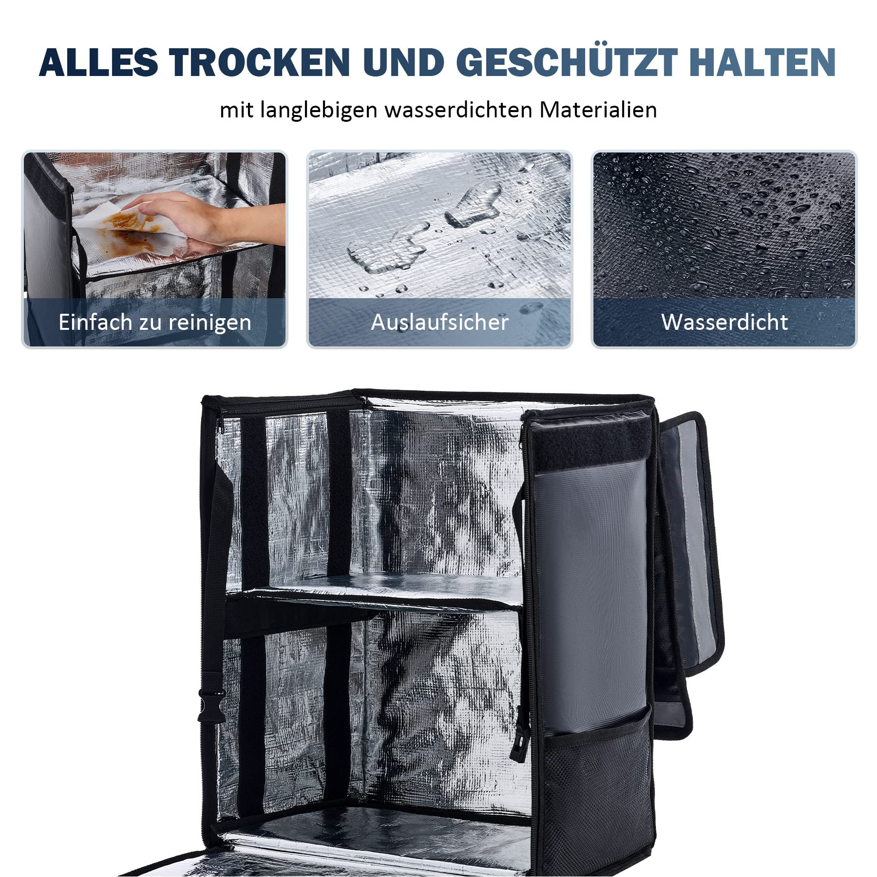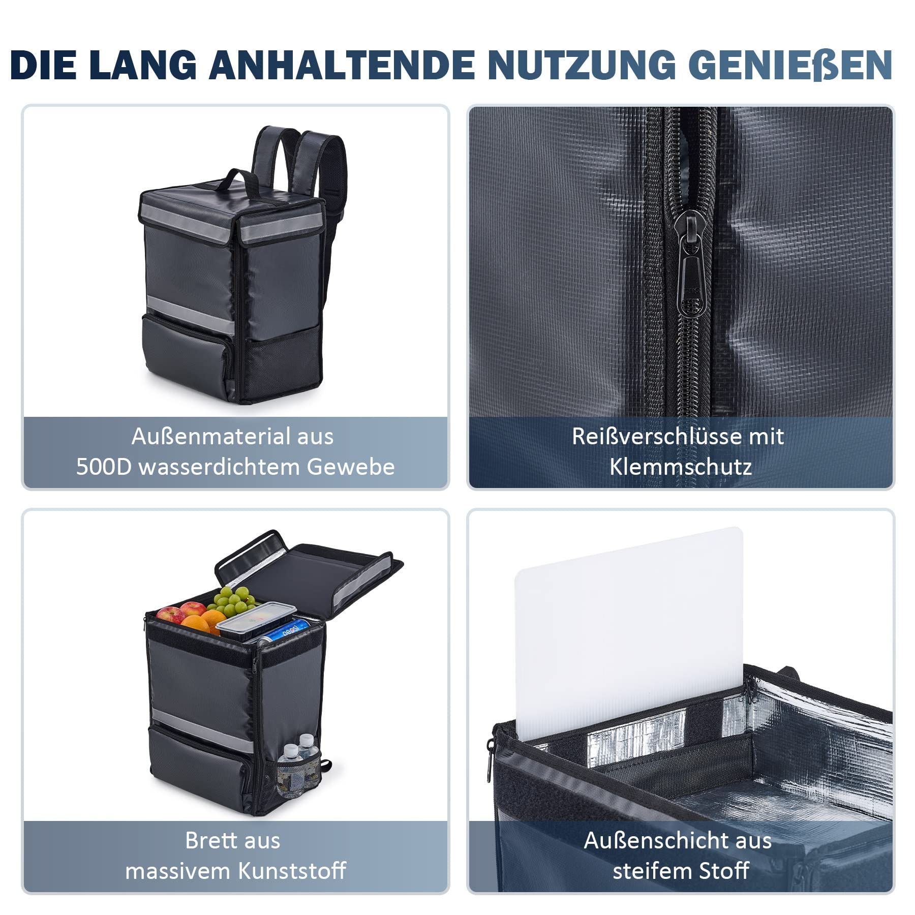 ["Heat and Cold Insulation - This food delivery backpack from CO-Z features easy-to-clean aluminum lining to maintain the temperature of your food. The dividers separate hot and cold dishes in the same delivery.",