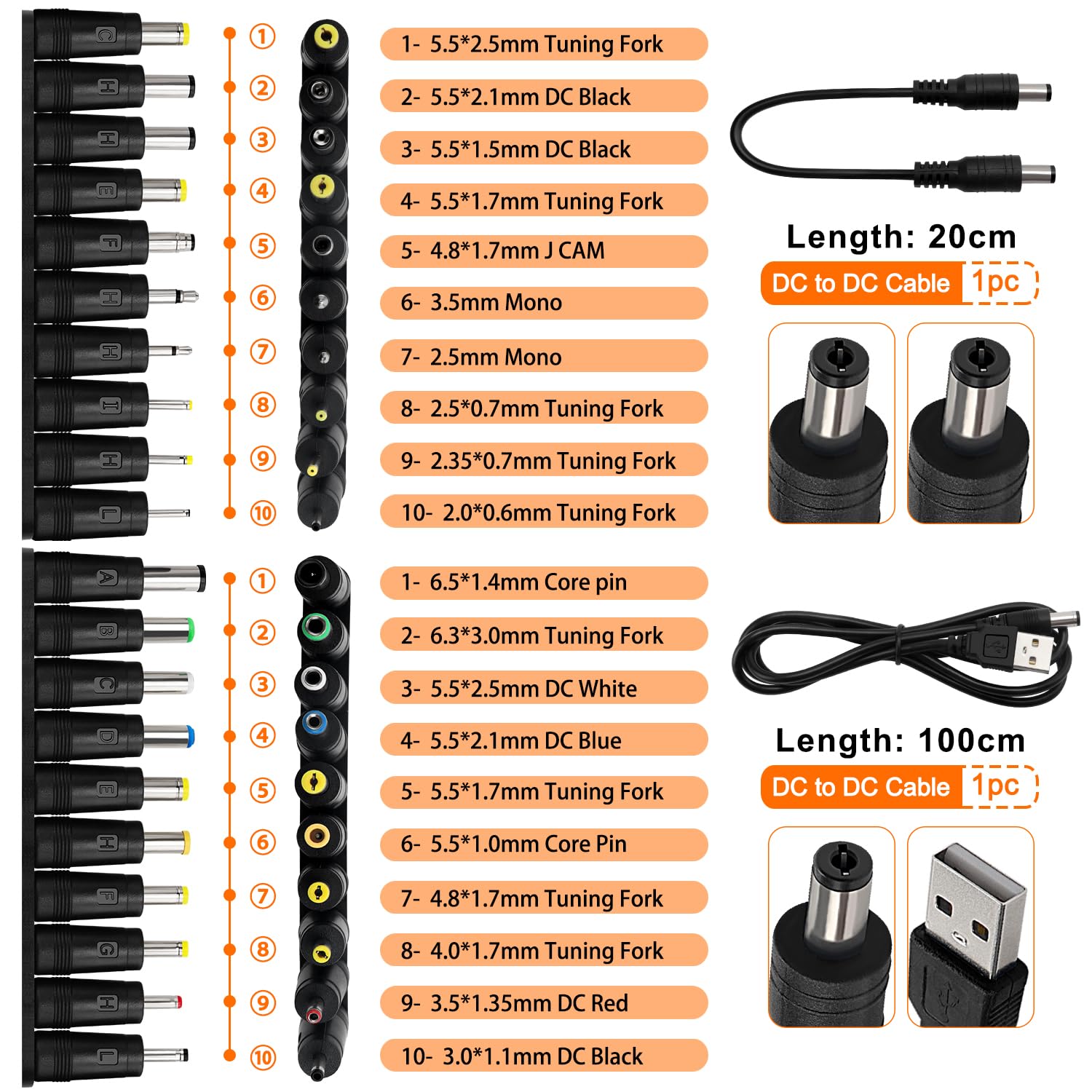 Easy to use: Socket base is 5.5*2.1mm, each power plug tip can be inserted into a 5.5*2.1mm plug and change the plug to a different size.