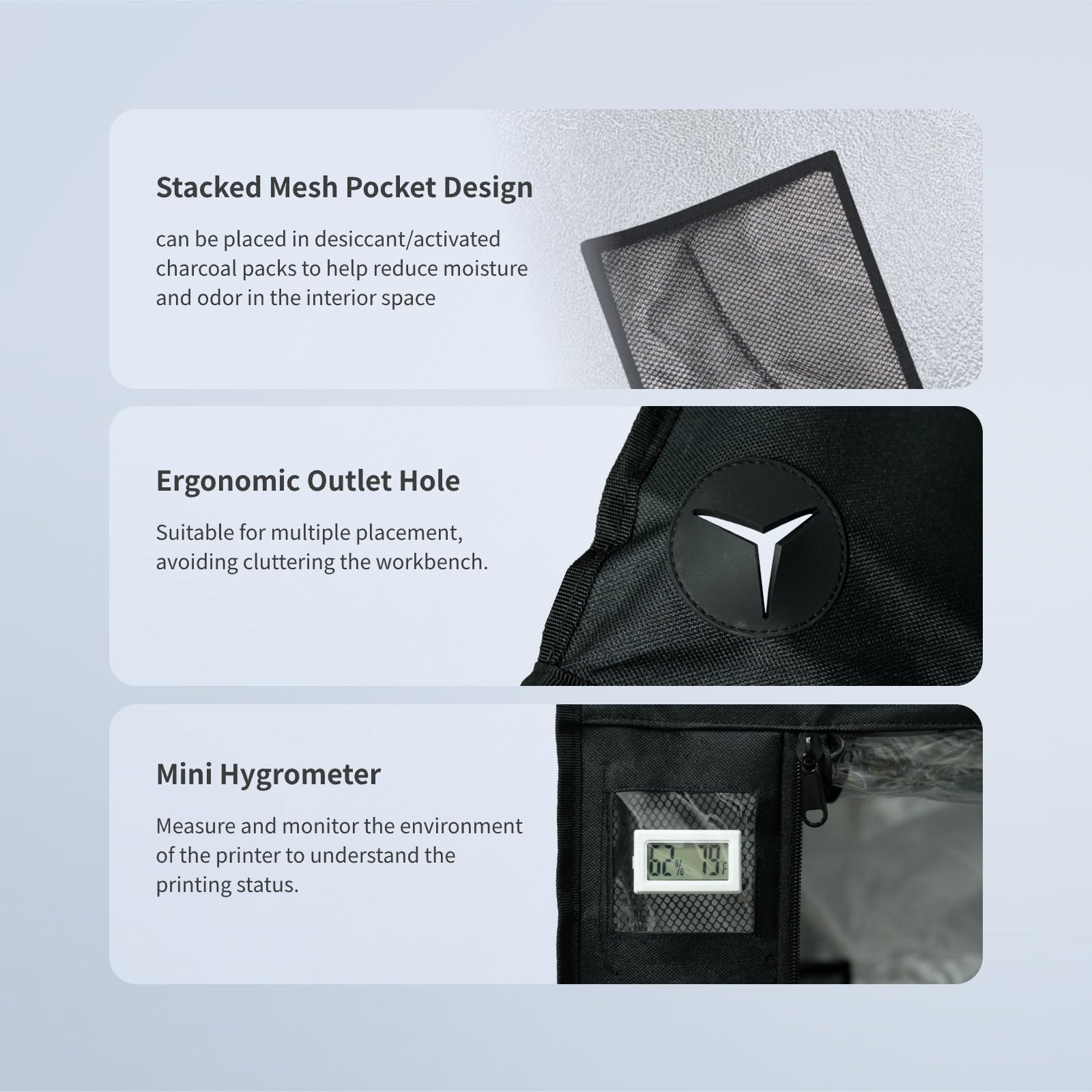 "【Dust Insulation】The sealed thermal barrier prevents external dust from entering the printing chamber, protecting critical components inside the 3D printer from contamination and extending the device's lifespan."