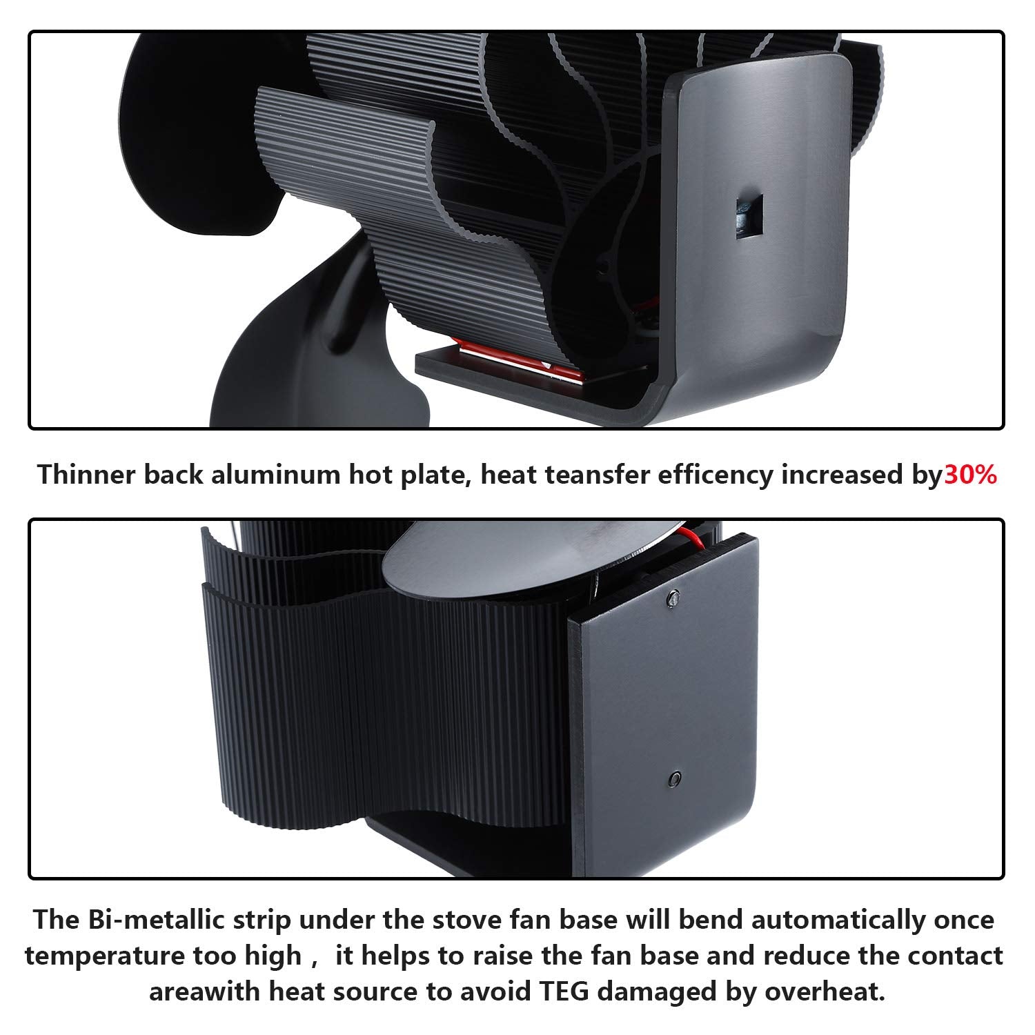 "No batteries or electricity required. The stove fan spins with the heat of the stove surface and automatically adjusts the speed to the temperature of the flue","Save on your bill, more efficiency. Use the heat from your wood stove to its full potential and distribute it throughout your room. Efficiently circulates warm air in the room","Latest design, space-saving. Installed on the chimney, you can choose a suitable angle and height, significantly improving room utilization","Heating operation. For operation of this self-contained 4-blade stove fan, no batteries or electricity are required. It increases the efficiency of your freestanding stove or wood burner to economically produce heat and helps you save on your bills","Perfect after-sales experience. If you have any questions during use, please contact us immediately. We will help you solve the problem within 24 hours"