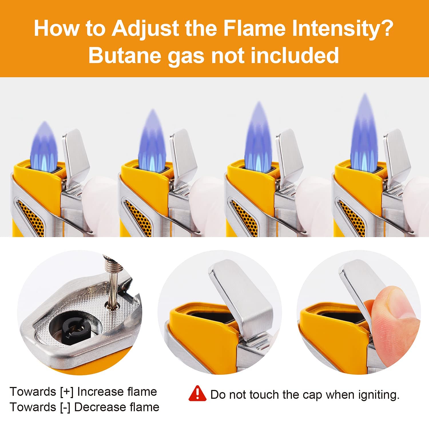 ["【100% HIGH QUALITY MATERIAL】Made of high quality leather and imported Spanish cedar wood, which is pleasant to the touch and durable. The cedar wood lining is hand-polished, providing a natural storage space. The perfect seal keeps cigars in optimal condition.","【EASY TO CARRY】Take 4 of your favorite cigars in this cigar case. The case is 20 x 14 x 7.6 cm in size. The max length of 17.5 cm and ring gauge of 60 makes it suitable for use at home or on the go, such as vacations, camping, bars, cafes, or anywhere away from home.","【CIGAR CUTTER/LIGHTER】The cigar cutter is made of 420 stainless steel and features a refillable triple jet flame in a stylish lighter (BUTANE GAS NOT INCLUDED!!!)","【PROVIDES MOISTURE】Adding cigar humidification fluid (or distilled water) to the humidifier can increase moisture molecules and maintain the required moisture of the cigar.","【MULTIPLE USES】The perfect gift for occasions such as weddings, Christmas, birthdays, anniversaries, retirements, Father's Day."]