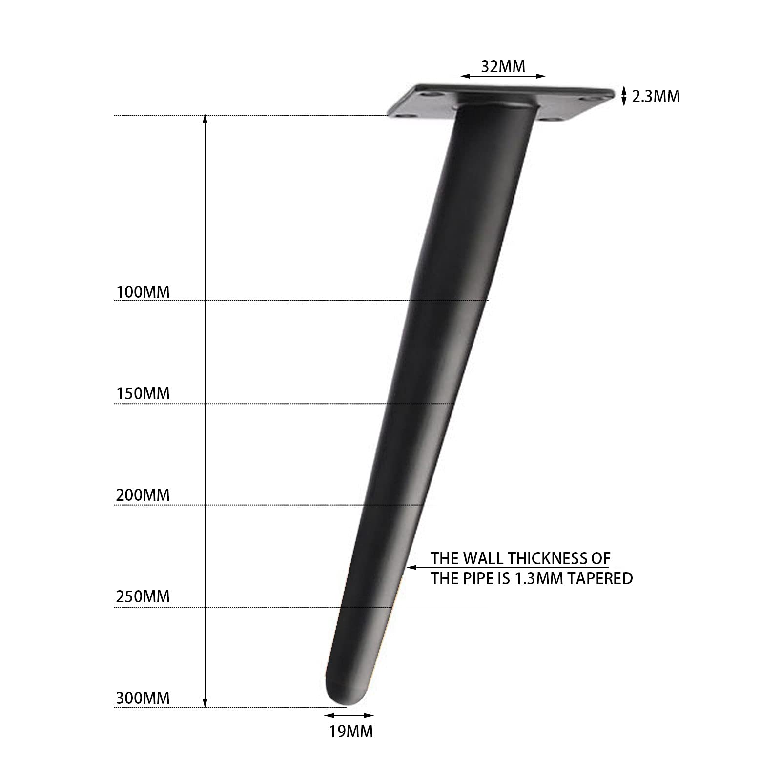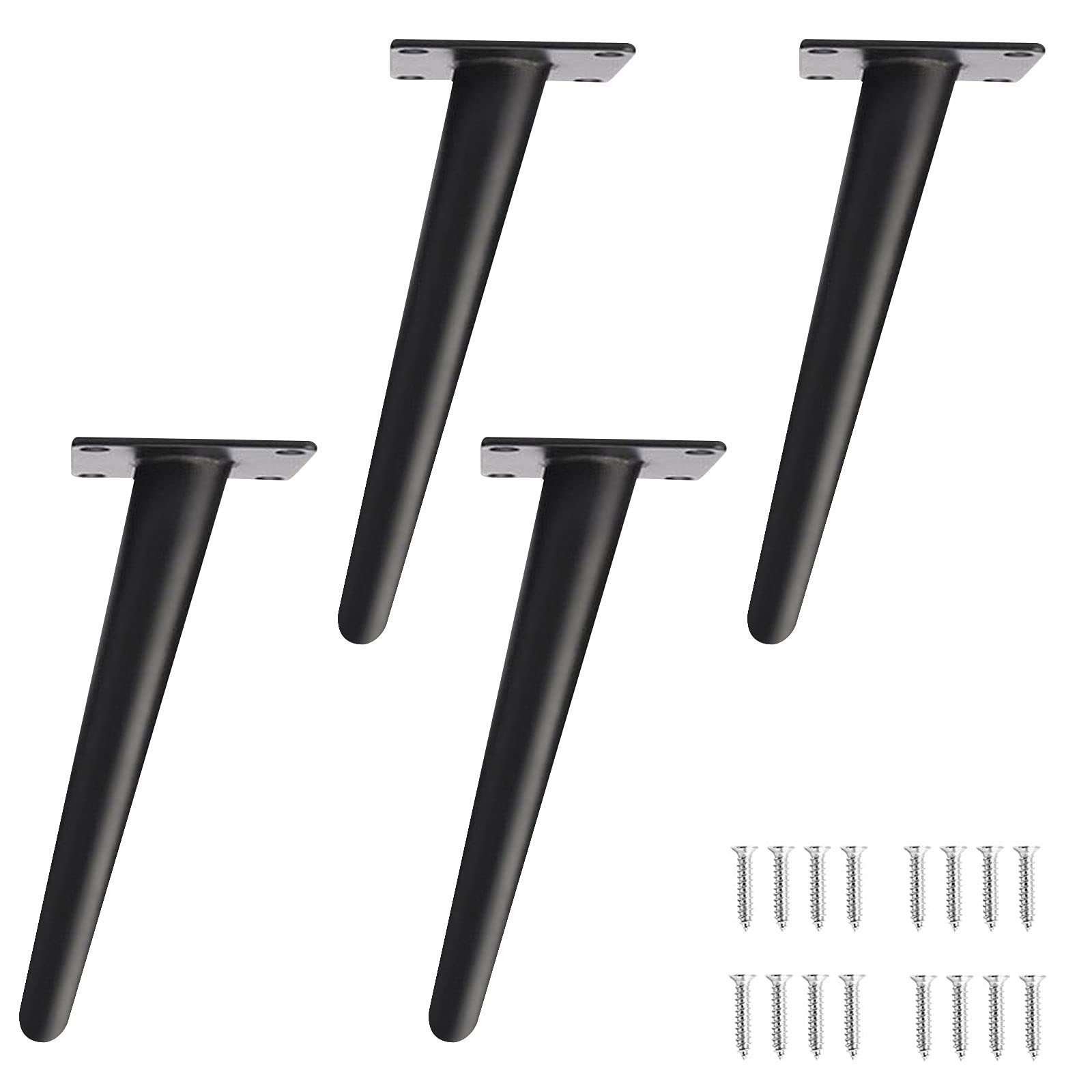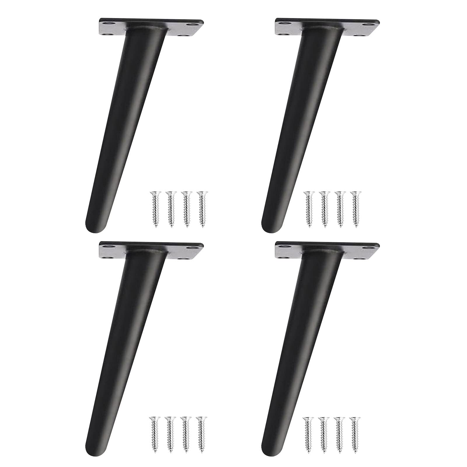4 pieces Furniture Legs Iron Conical Table Legs Slanted Table Legs Cabinet Legs Sofa Feet Pedestal Metal DIY Furniture Table Frame Furniture feet for coffee table cabinets furniture sofas (25 cm, Black)