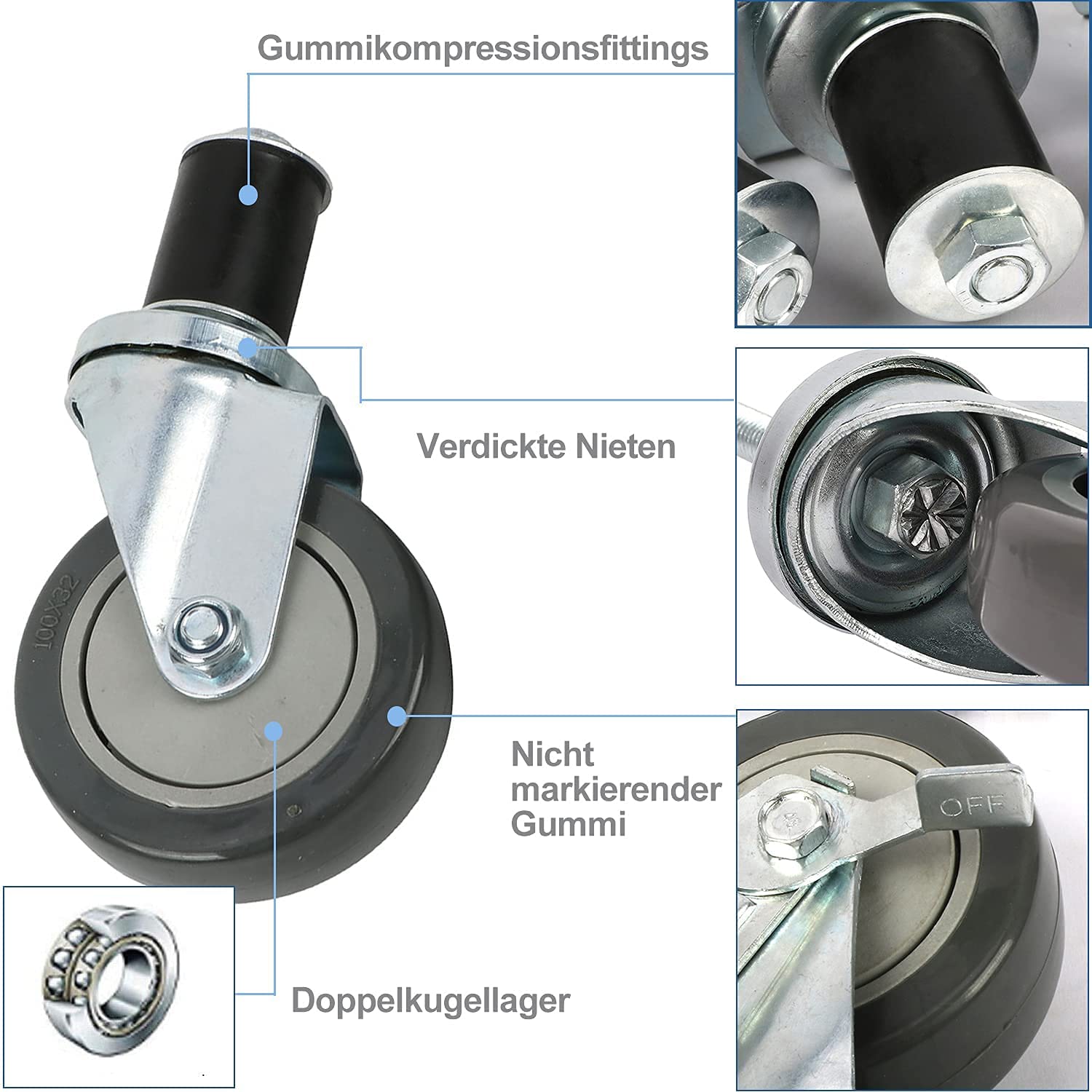 Hochwertiges Material : Schwerlastrollen gewinde ist aus chemikalienbeständigem Polyurethan, verzinkt, pvc, Eisenblechhalterung, gebaut, um zu dauern. Jedes Rad enthält eine Gummikompressionsverschraubung an der Spitze