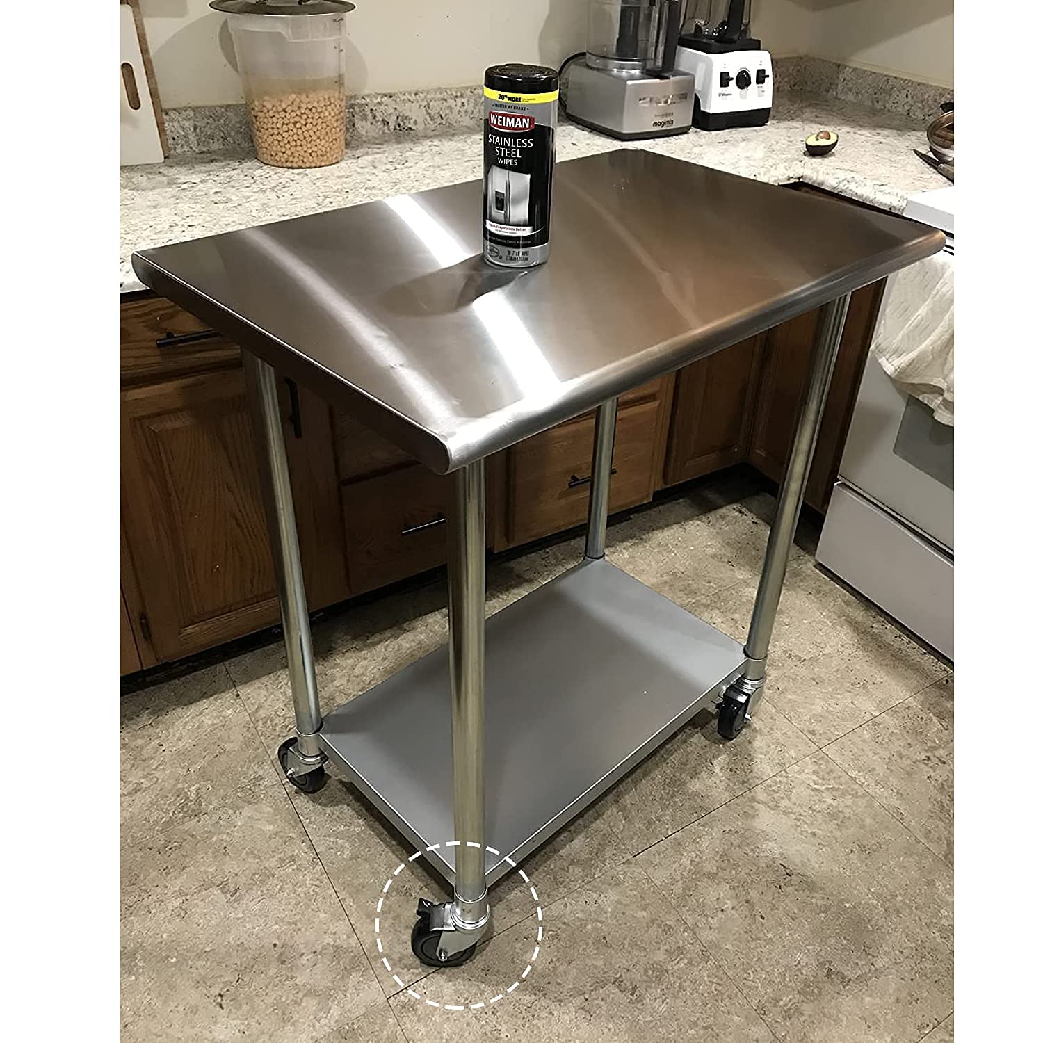 Geräuschlose Rollen : Die 3.93" kommerziellen Küchentischrollen sind leise rollend, nicht klappernd und arbeiten auf fast jeder Oberfläche wie Fliesen, Beton und Holz. Zwei Räder haben eine integrierte Bremse, die blockiert werden kann, um Ihren Tisch an seinem Platz zu halten"