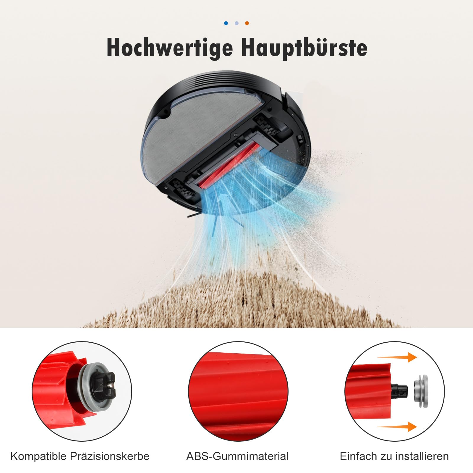 đăEasy to InstallăThe snap-on installation allows the main brush to be easily replaced without tools. It is recommended to replace the multi-sided brush roller every 3 months to improve suction power and performance, and extend the life of your vacuum robot."