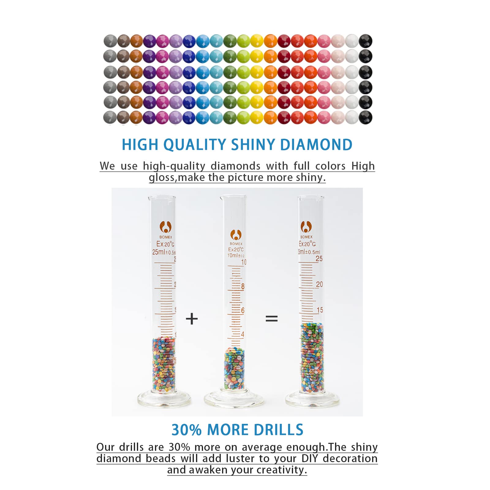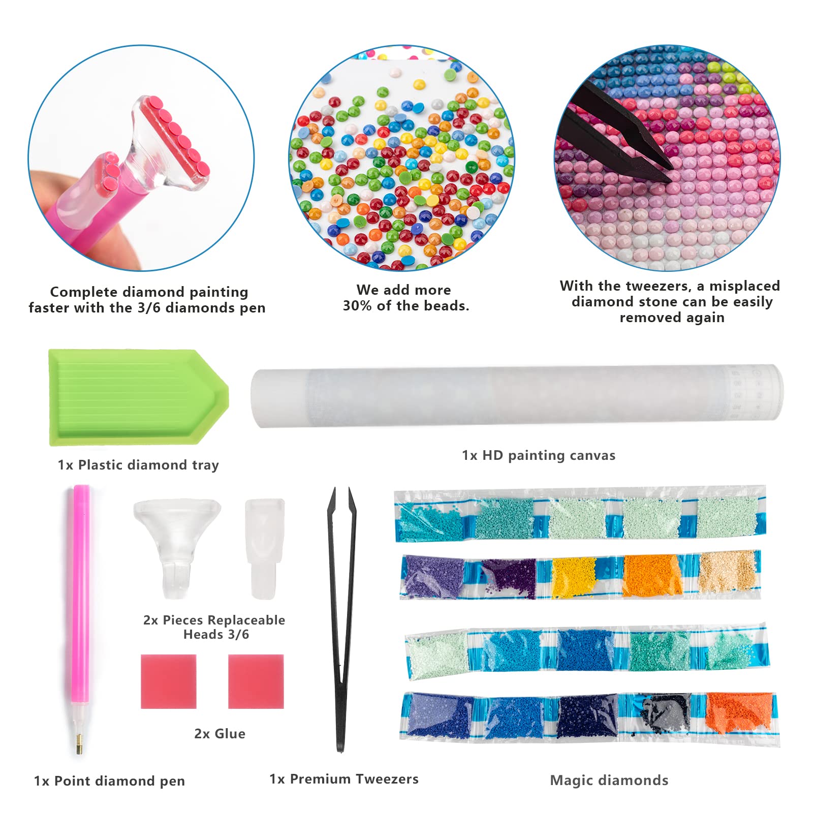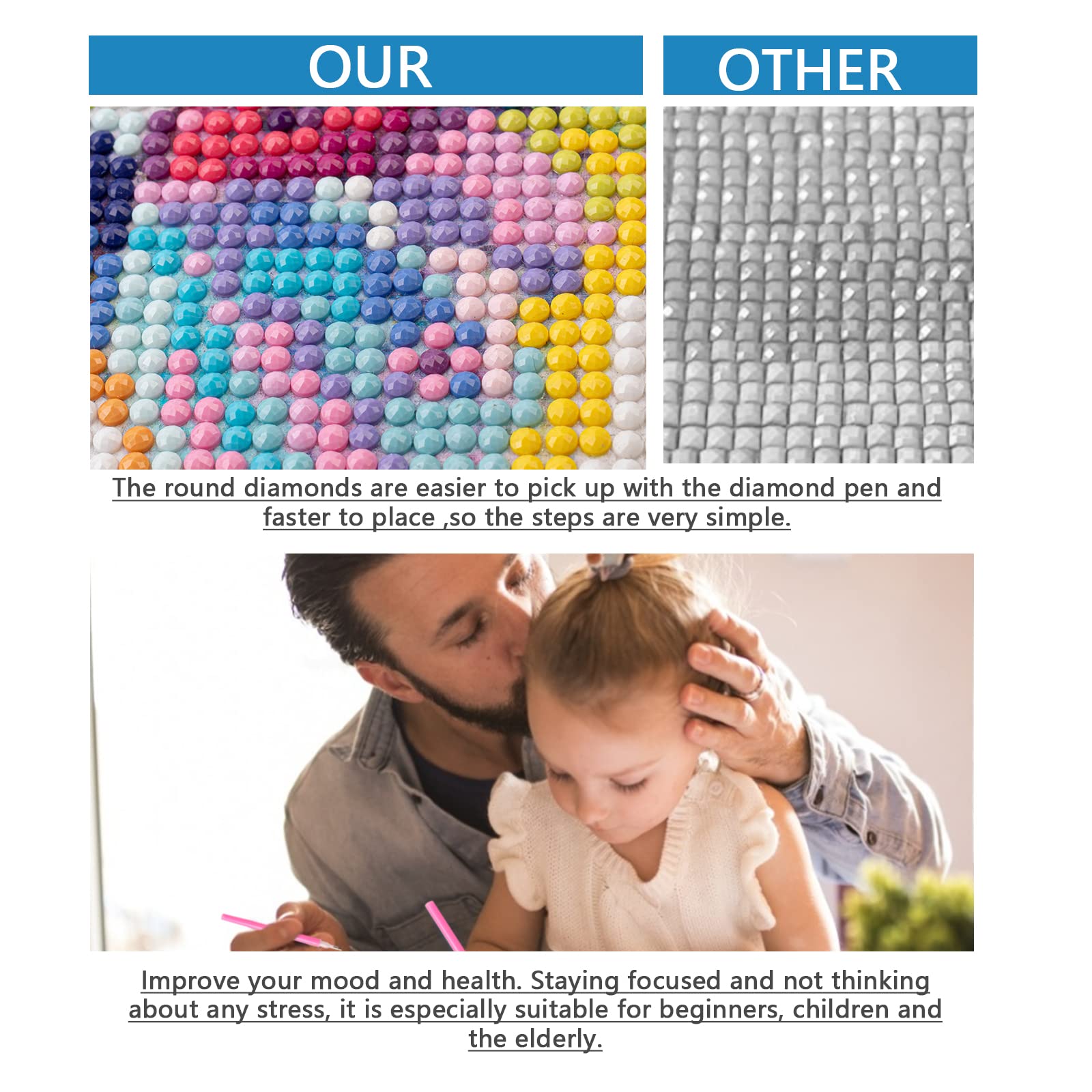 ["✿✿Round Diamond Painting for Kids and Beginners & Clarity✿✿ Advantage: Smaller mistakes are forgiven, painting goes slightly faster. Disadvantage of Square Diamond Painting Square Stones: One must lay very precisely, noses or corners on the stones must be removed. The clarity of Diamond Painting for Kids Girls Diamond Painting Adults Diamond Painting Pictures Adults depends on the number of motifs in the picture. Our pictures with fewer details are very clear.",