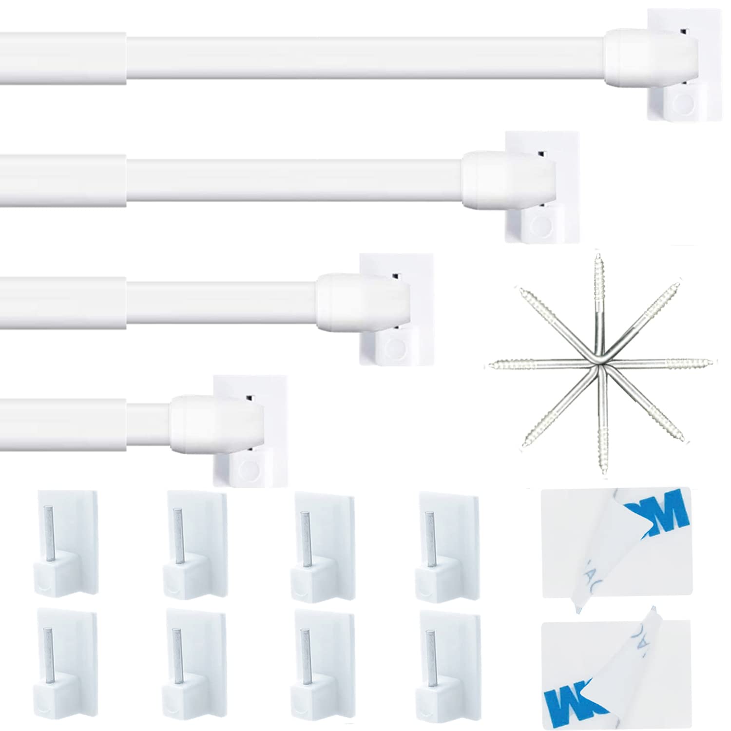 4 pieces of extendible curtain rods for curtains, windows, kitchen, DIY projects. Adjustable length from 40-70cm in white color.