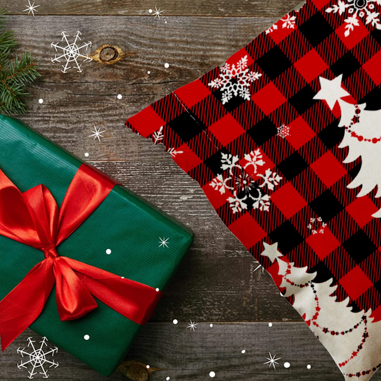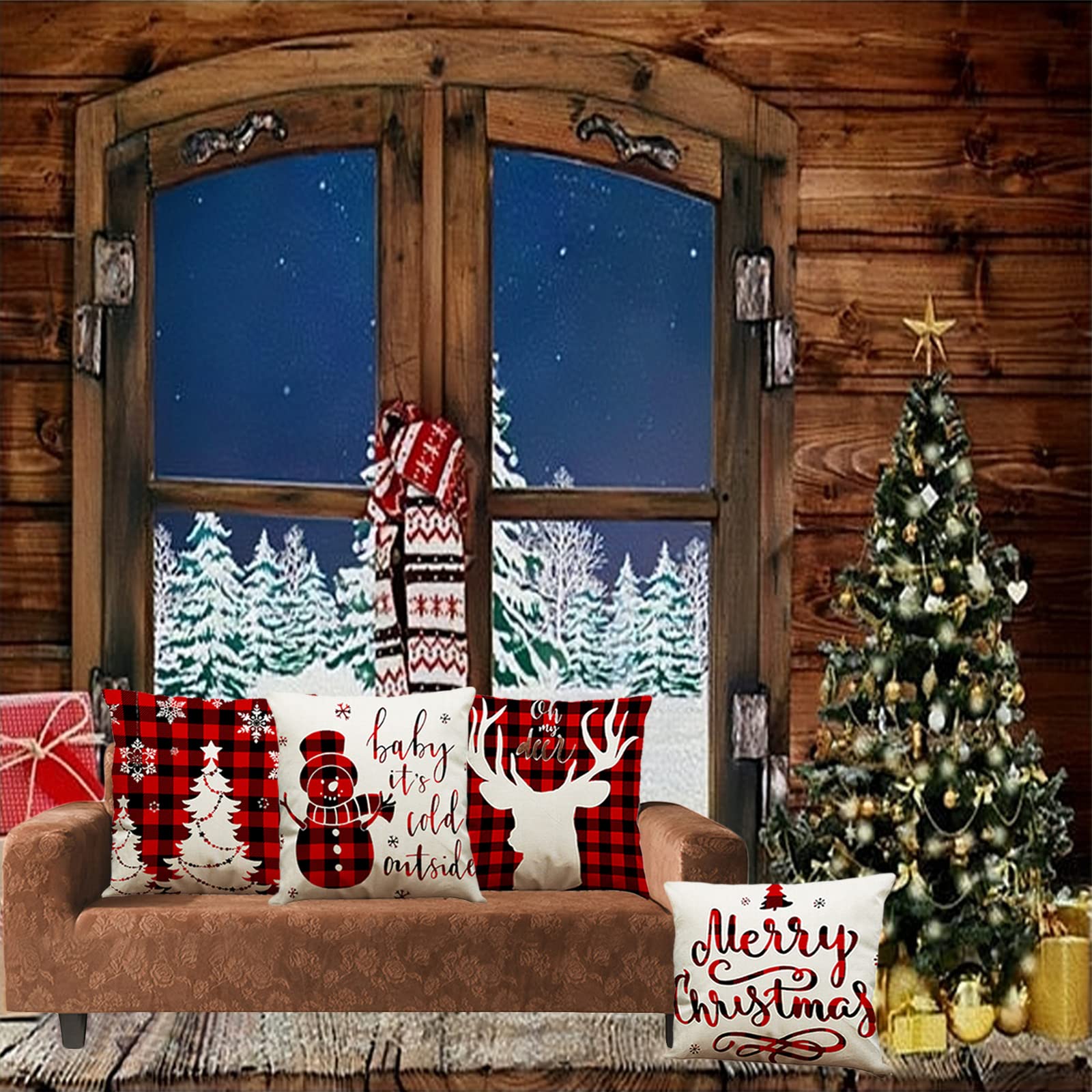 "Cushion cover Christmas 45cm × 45cm, without cushion core, Material: Pillowcase uses cotton and linen, durable and environmentally friendly, Perfect design: Christmas cushion covers with hidden zipper design, tight seams and flawless print, Christmas decoration: 4 types of decorative cushion covers with different patterns are very suitable for creating a festive atmosphere on your sofa, couch or room and are perfect Christmas gifts and decorations, The perfect gift: Christmas cushion covers are suitable as Christmas gifts for family or friends, they will be very happy"