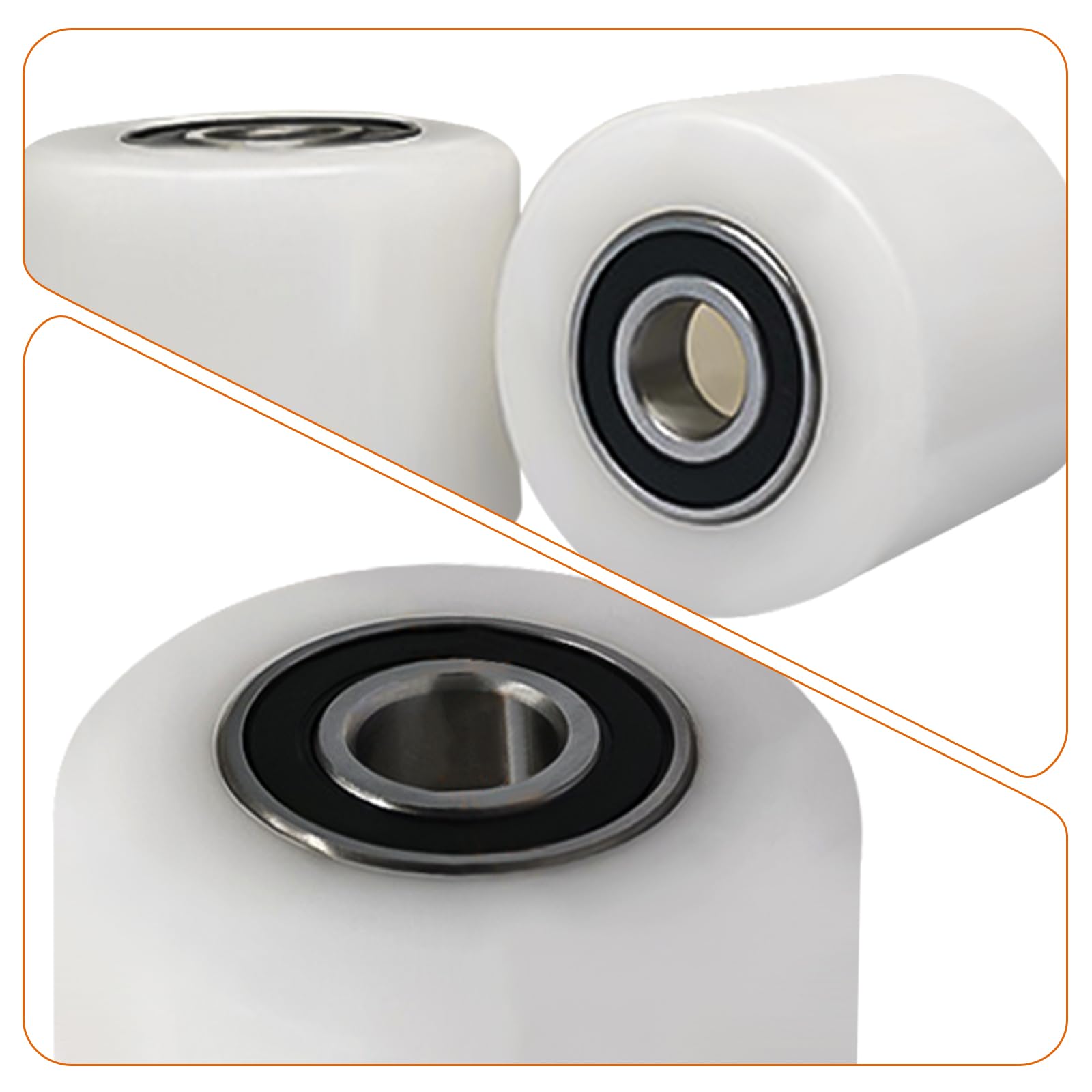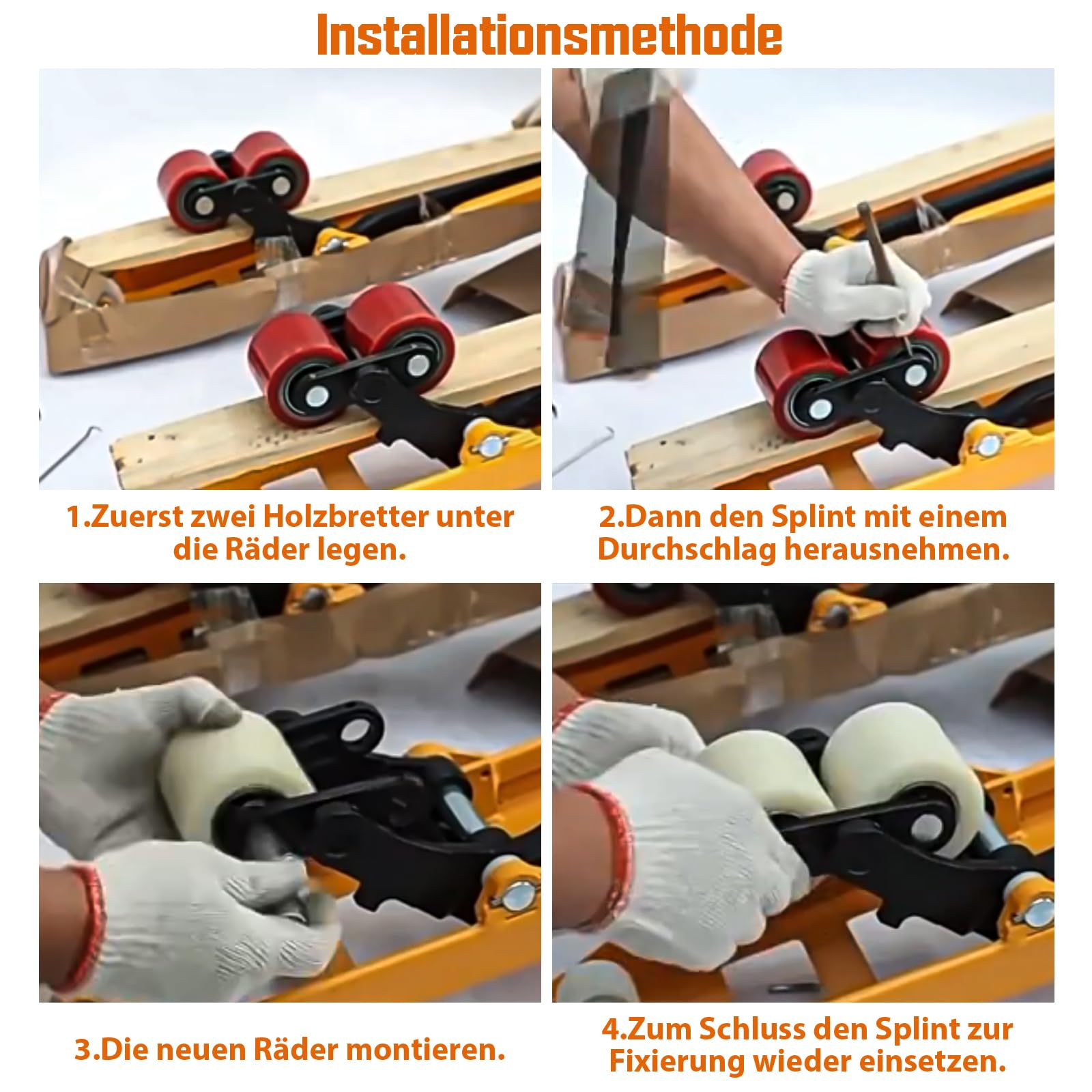 4 pieces pallet truck wheels made of polyamide nylon 80 x 70 mm, axle 20 mm including ball bearings. Wheels for pallet trucks replacement wheels, Max load 1000 KG.