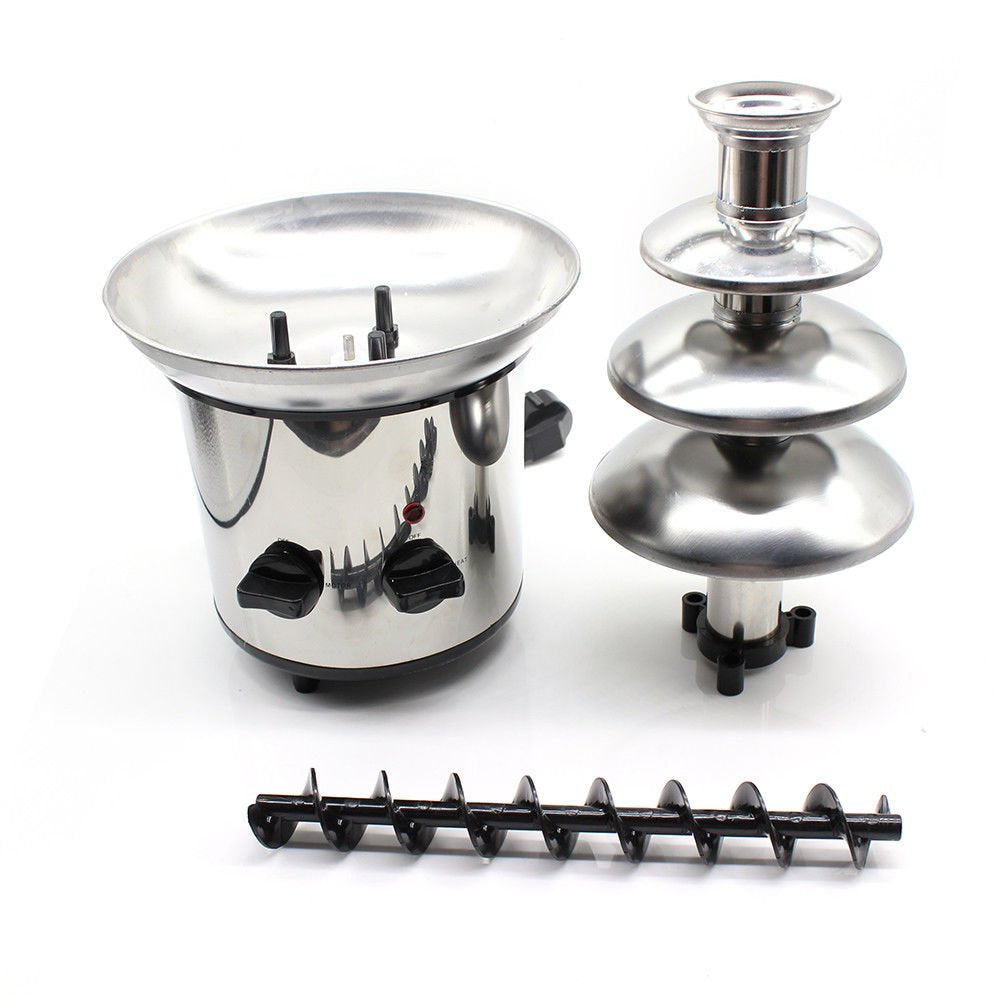"Chocolate cream is the best choice for this machine. Chunky Chocolate cannot produce a good chocolate cascade or affect normal operation. In cold weather, we recommend that the chocolate cream forms a good chocolate cascade for at least 15-60 minutes. Chocolate melts quickly and directly, adjustable syrup temperature, thermal stability. Chocolate fountain, easy to clean and easy to install, complete sealing system. Material: Stainless steel, Power: 170 W, Maximum capacity for chocolate: 2.20 lbs. Package includes: 1 x chocolate fountain, 1 x power cord (EU plug)"