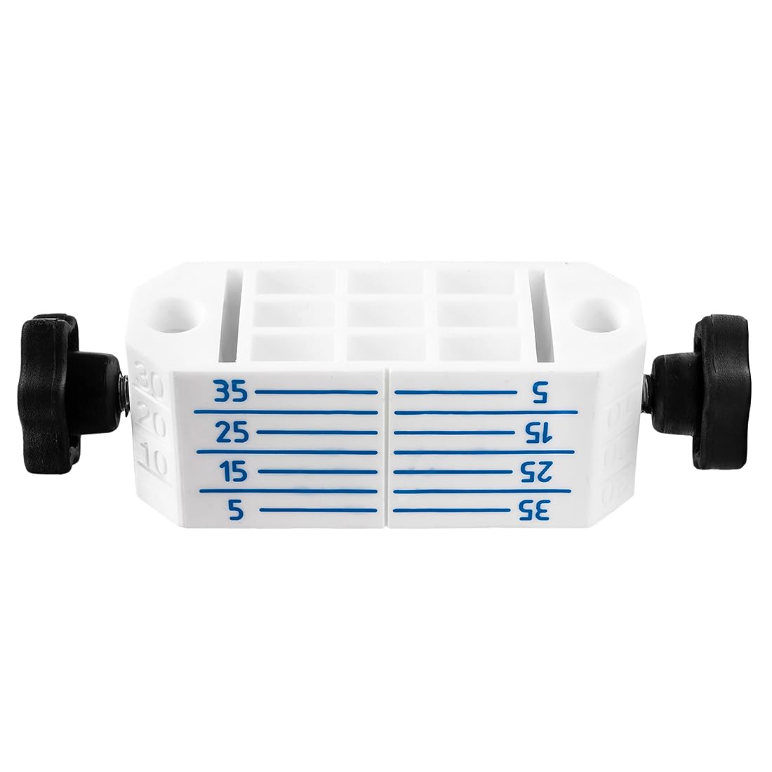 ["The bracket is an essential tool for the precise installation of ceilings with CD60 profiles and ES hooks. Quick and easy installation of the bracket makes work easier and saves a lot of time.","Reinforced construction - Thanks to the mesh, our leveling handle has a reinforced structure that ensures stability, strength, and rigidity.","The white color gives the product elegance and aesthetics and creates a perfect contrast to the laser beam, making it clearly visible and tangible. Suitable for ES brackets and CD60 profiles.","Perfect layout - The professionally processed blue separation provides more aesthetics and facilitates the readability of the product, ensuring comfort and precision. Horizontal division: 5, 10, 15, 20, 25, 30, 35 mm, side measurement lines allow more freedom in adjusting the laser.","Side measurement lines allow for greater flexibility in laser adjustment. The handles are equipped with components made of high-quality steel.","The bracket has a horizontal division of 5, 10, 15, 20, 25, 30, 35 mm and a vertical division in the middle of the handle."]