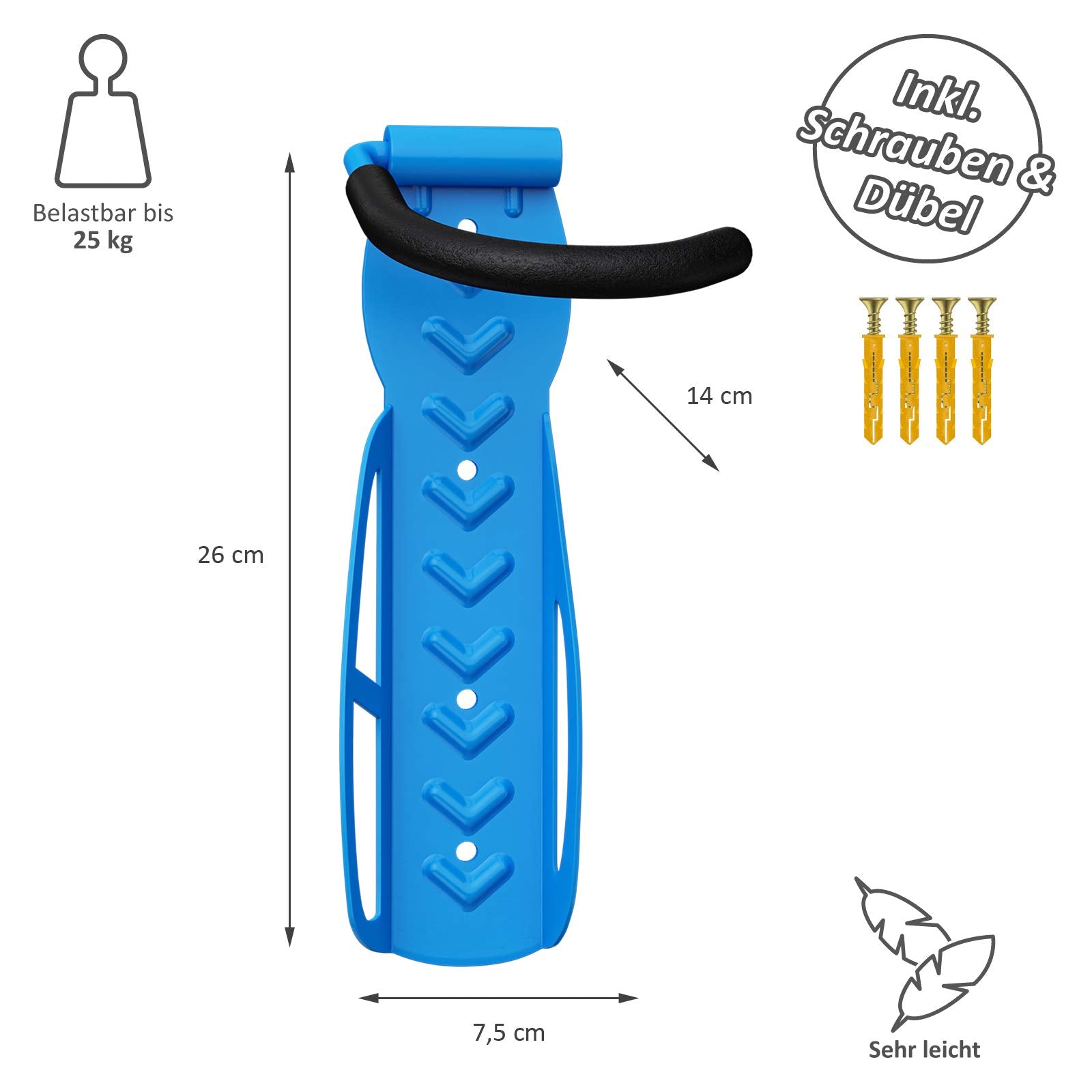4 x WELLGRO Wall Bike Holder - Steel Bike Wall Mount - Bike Hooks - Bike Stand - Rack - Color selectable, Color: Blue
