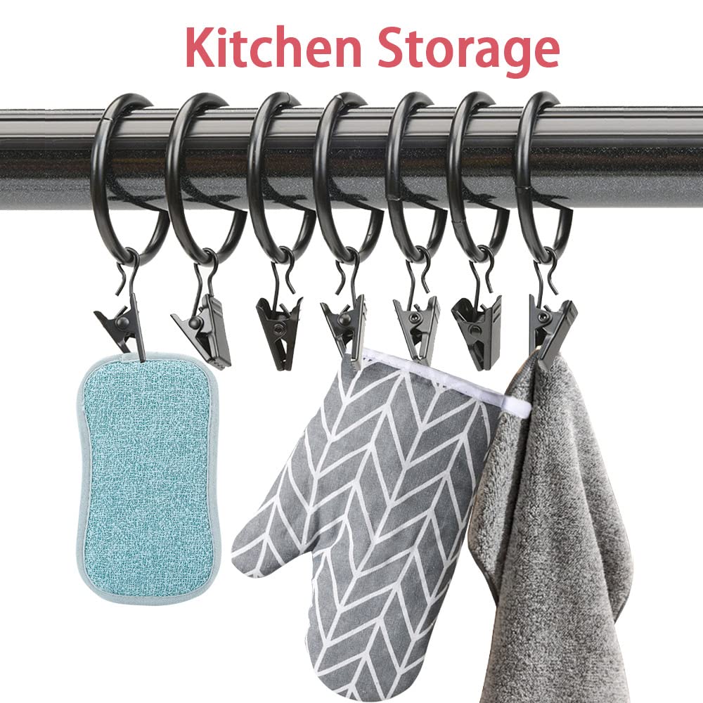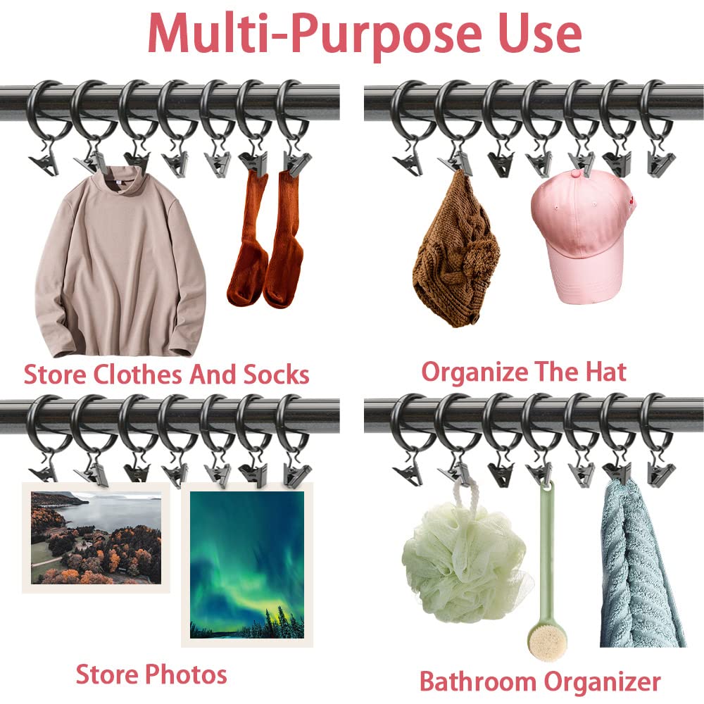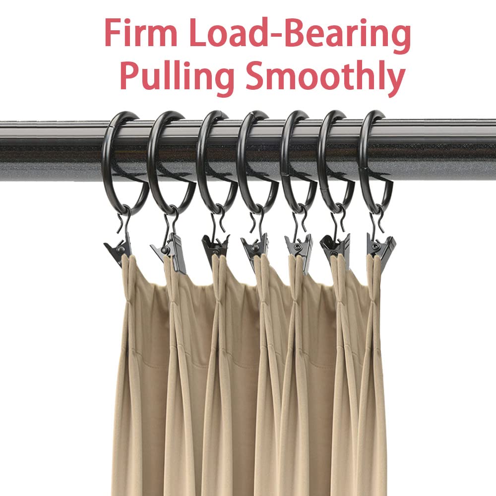 ["Curtain Ring and Clip: The curtain clip ring is a serrated clip with strong grip, making it slip-resistant when hanging things. Made of high-quality metal, with strong capacity and smooth pull.","Durable and rust-free: We use the electric welding process on the connection of the curtain rod clamp hooks, significantly increasing strength and aesthetics. The curtain ring is manually hung for electrophoresis, making it rust-free and durable.","【Size】There are 40 curtain rings in a set. The inner diameter of each curtain ring is 2 inches, and the ring thickness is 0.4 inches. This ring is suitable for curtain rods with a diameter of 1.6 inches or less.","Decorative: The surface of the fashionable, pure black curtain ring is electrophoretic, making it beautiful and shiny. Hanging at home is beautiful and stylish. Curtain window ring is also suitable for hotels, restaurants, bars, conference rooms.","【Organization】 The curtain clips with rings can not only be used to hang curtains, but also to organize items in daily life. You can hang your hat, towel, etc. It can also be used to hang artwork or decorations."]