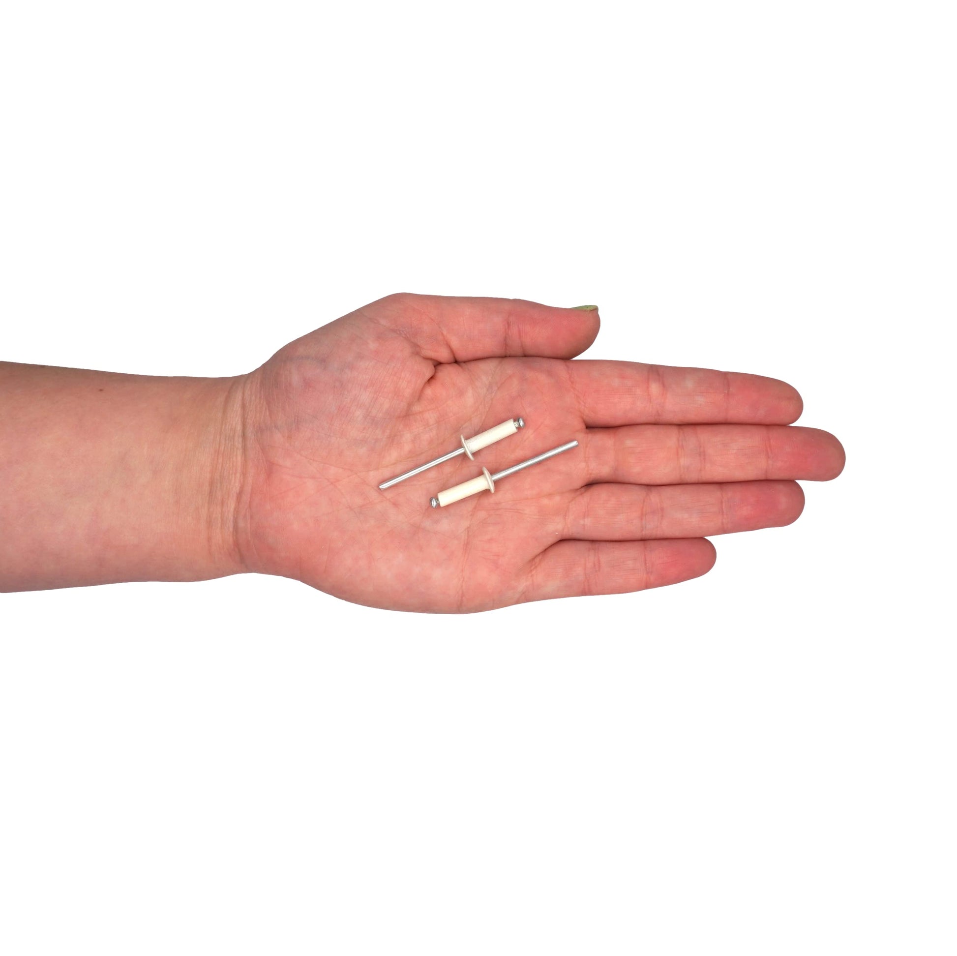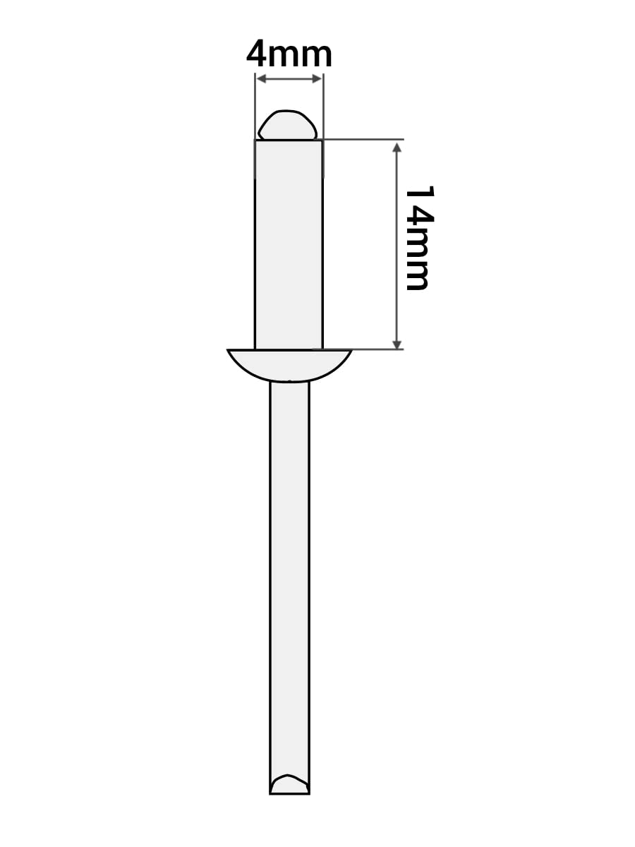 ["Packaging: 400 pieces Blind Rivets Size: 4.0 x 14 mm Aluminum body and steel mandrel DIN 7337 standard Color: pure white (RAL 9010)", "Dome head blind rivets also known as Pop Rivets can be installed on connections from only one side of the part, making them \"blind\" to the opposing side", "The mandrel of the rivet is made of steel and coated with a layer of zinc to protect against corrosion;", "These blind rivets are popular for connecting metal elements. Easy to install, very tight and secure. Versatile: from DIY to industrial applications", "I provide invoices with VAT shown."]