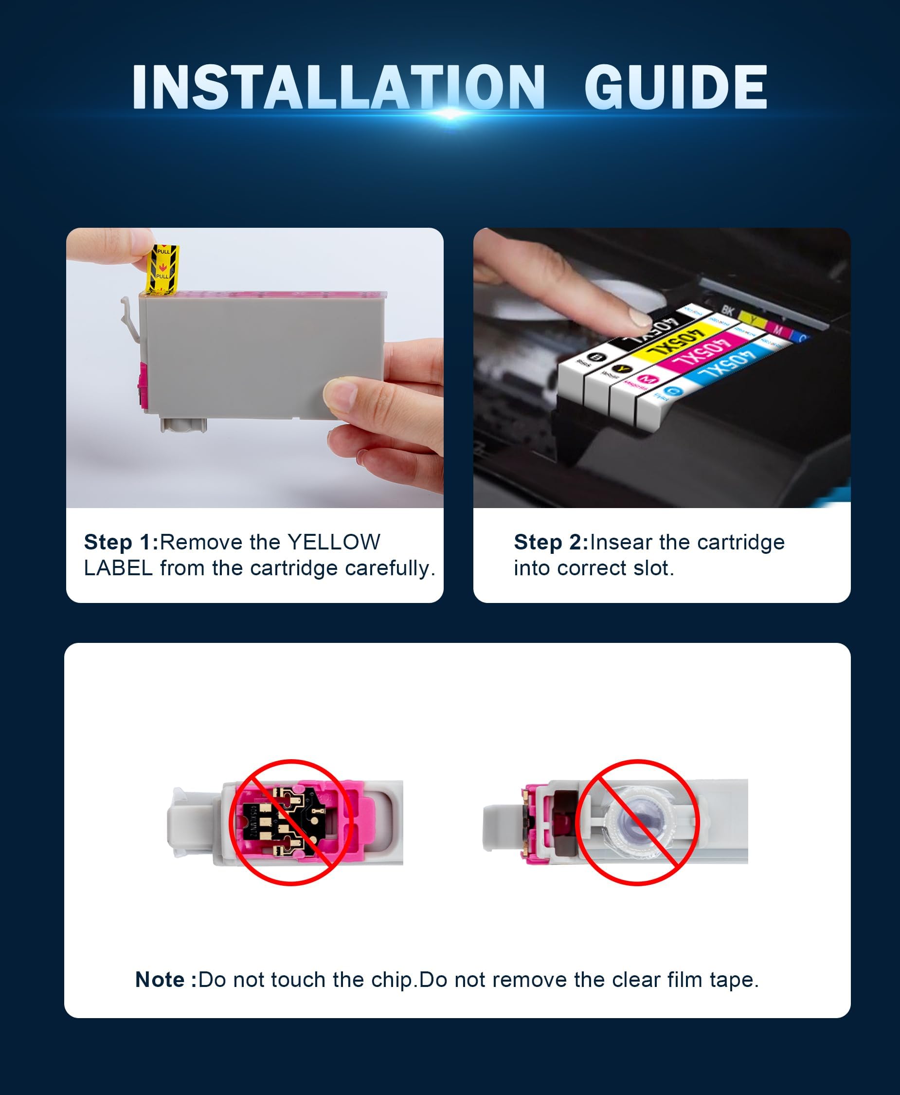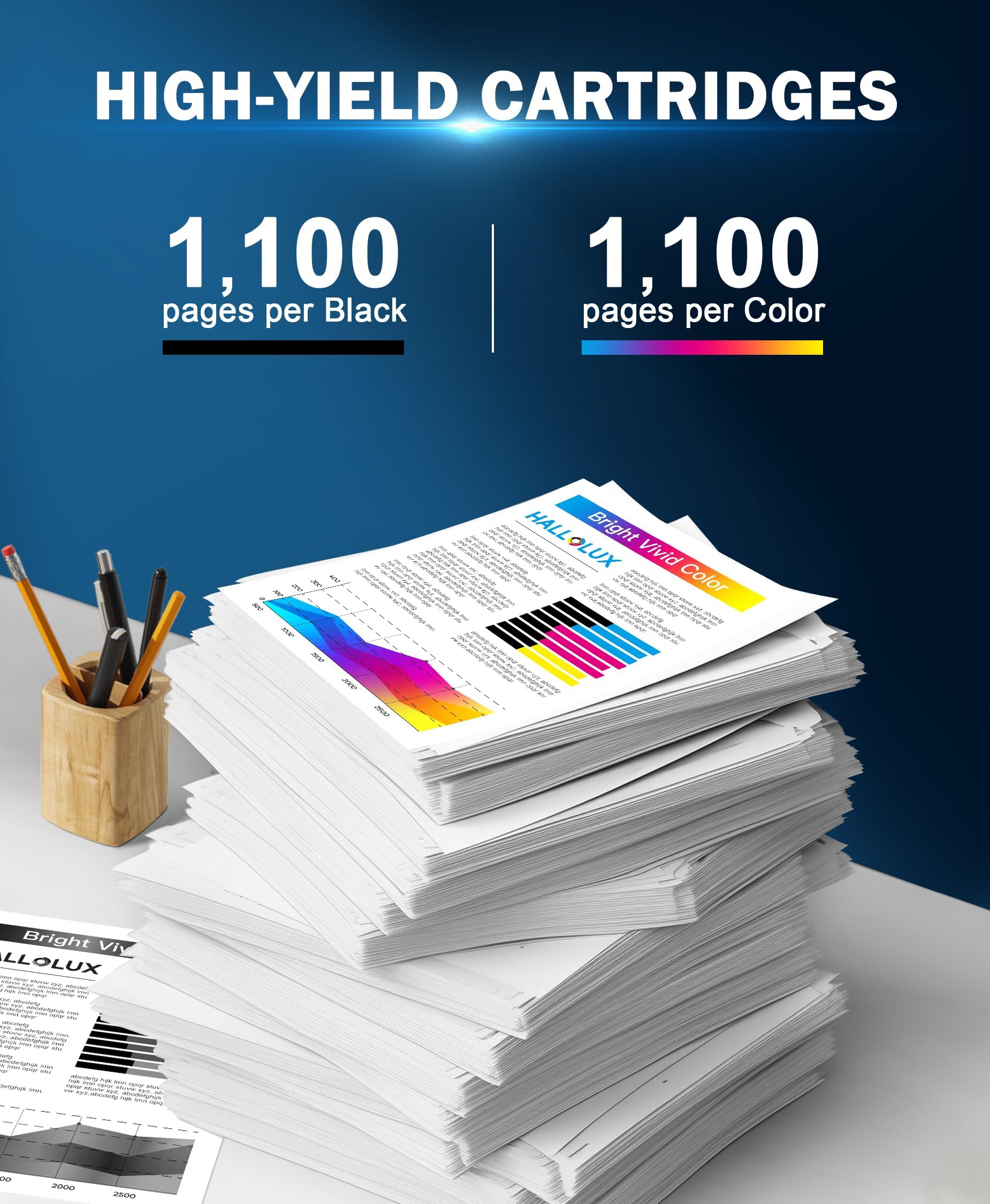 "HALLOLUX 405 XL Multipack 405 xl cartridges for Epson 405 (Non-Original, New and old packaging will be randomly sent, product quality is the same)", "Compatible printers: Compatible for Epson WorkForce Pro WF-3820DWF WF-3825DWF WF-4820DWF WF-4825DWF WF-4830DTWF WF-7830DTWF WF-7835DTWF WF-7840DTWF printers", "Estimated page yield: 1100 pages per 405XL Black cartridges for Epson 405XL Black; 1100 pages per 405 XL Color Cyan/Magenta/Yellow Cartridge for Epson 405XL Multipack (at 5% coverage)", "Package contents: 2 Black, 1 Cyan, 1 Yellow, 1 Magenta, Compatible for Epson 405XL", "HALLOLUX 405XL is compatible with Epson WF 4820 printer cartridges and delivers high-quality print quality and vibrant print colors"