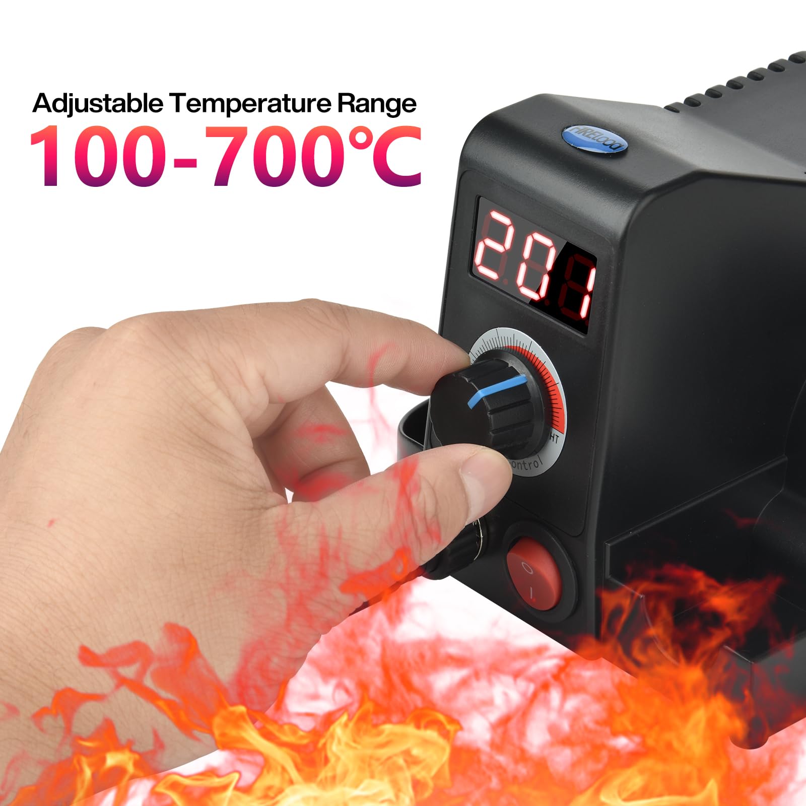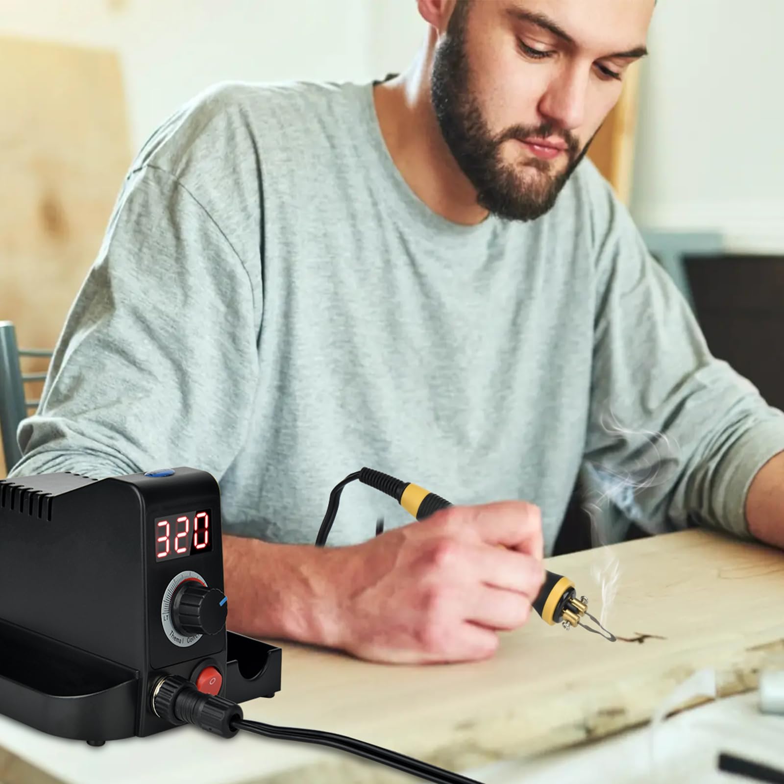 "Temperature control: The heat transfer machine features a built-in digital display that allows precise temperature adjustment between 100 and 700 °C. The temperature of the pen tip can be continuously controlled to maintain the temperature of the pen tip constant at a suitable temperature for wood burning.",