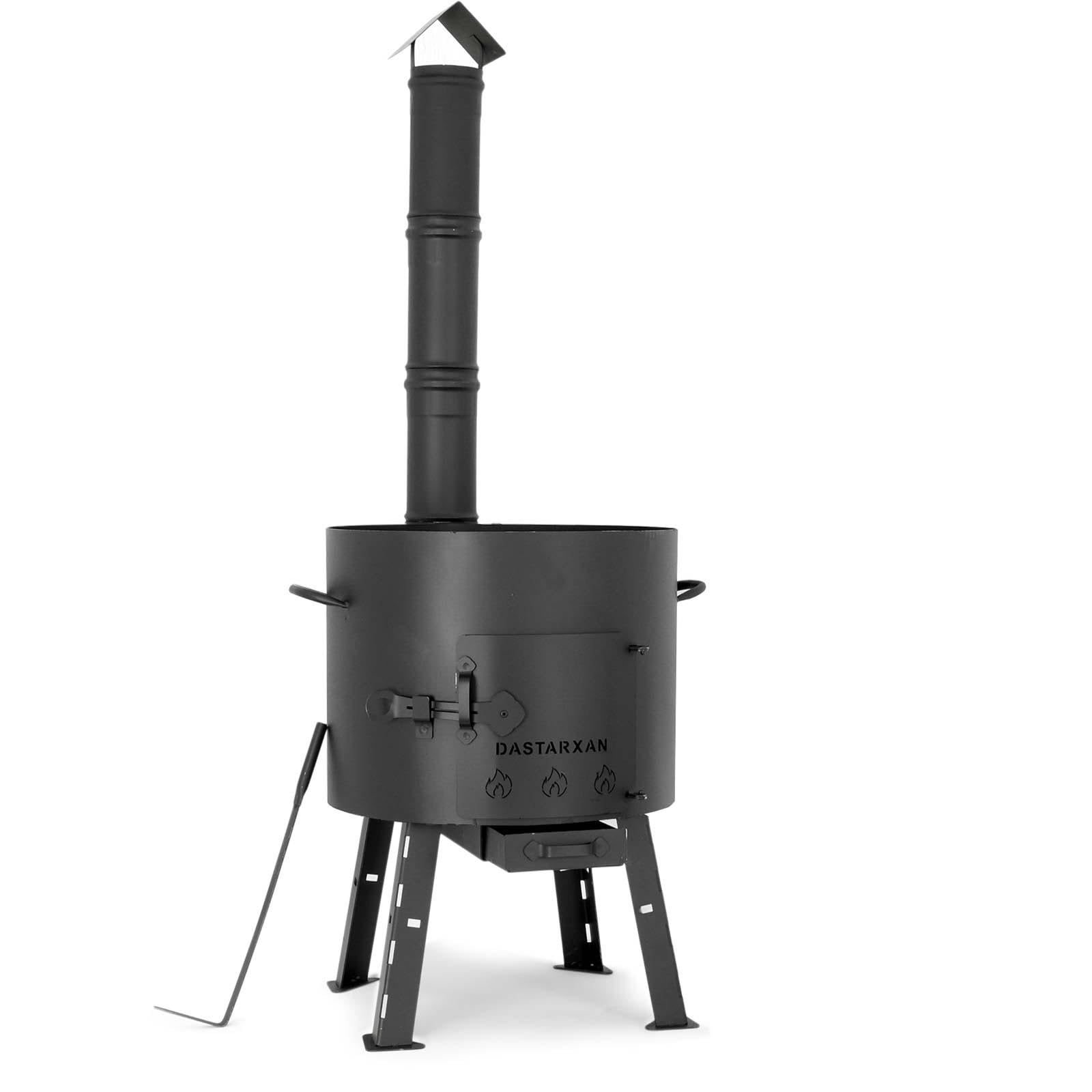 ["Product type: Utschak 2mm steel / Fire pit / Kazan / Kasan / Hungarian kettle goulash pot / Ladle / Soup ladle / Grill fan", "Our campfire stove is suitable for solid fuels and is fueled with wood or coal. The door regulates air flow and makes it easier to add more fuel", "The field kitchen is versatile and is an absolute \"eye-catcher\" at any garden party, celebration or camping trip. Whether you use the Uchag as a fire pit for a nice summer evening or as a charcoal grill at a barbecue party, thanks to the Uchag, every garden party becomes something special", "The heat-resistant powder coating not only provides an aesthetic appearance, but also makes the grill less prone to rust", "The Kazan is hand-made. The lid may vary slightly as a result. The Kasan is polished on the inside and extremely rough on the outside", "Made in Uzbekistan. Sand casting process."]