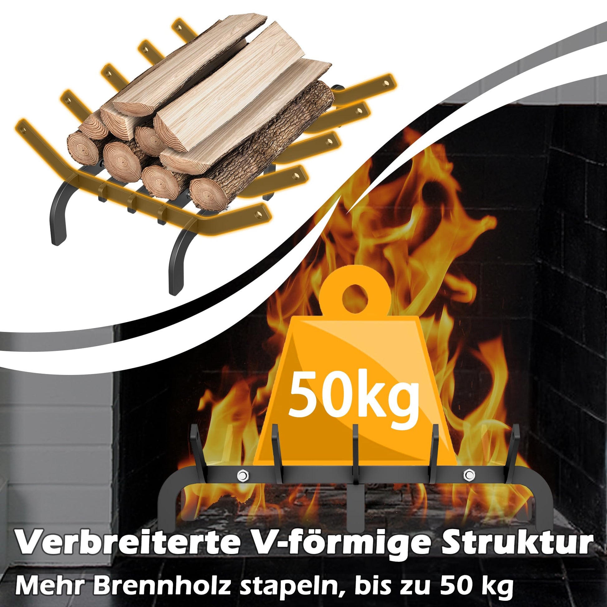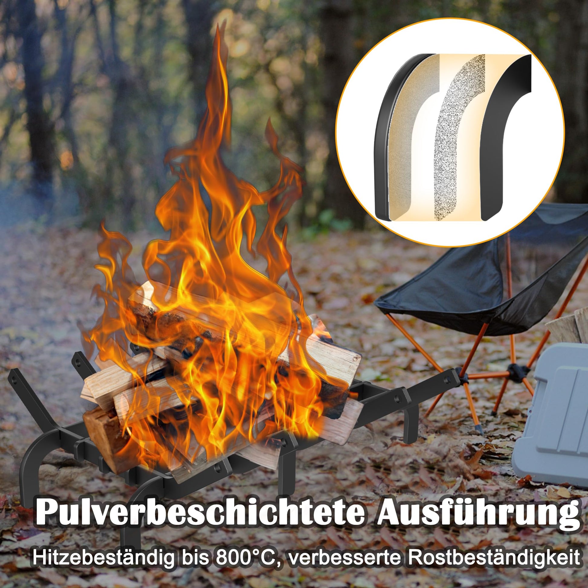 ["High-quality steel construction for maximum stability: The Aufun firewood grate is made of sturdy high-carbon steel, ensuring excellent durability and longevity. With a material thickness of 6 mm and a premium black high-temperature powder coating, the fire grate can withstand extreme temperatures and resist rusting.","Optimal air circulation for quick ignition: The 7 cm high platform area raises the firewood off the fireplace floor, allowing air to circulate freely. This efficient air supply promotes quick and even fire ignition, increasing your fireplace's heating performance and reducing fuel consumption.","Perfect size for versatile applications: Measuring 42 cm in length, 30 cm in width, and 12 cm in height, this Aufun firewood grate fits most standard fireplaces. The mesh size of 72.5 x 32.5 mm allows for secure storage of firewood and charcoal without smaller pieces falling through.","No assembly required - simply insert and use: The Aufun firewood grate comes fully assembled and ready to use. Save time and effort - no complicated assembly needed! Just place the grate in the fireplace or fire pit and start enjoying the fire.","Lightweight yet sturdy for easy handling: Despite its light weight of only 3.4 kg, this firewood grate offers impressive stability and load-bearing capacity. The thoughtful design ensures even weight distribution of the firewood, protecting the grate from heat deformation."]