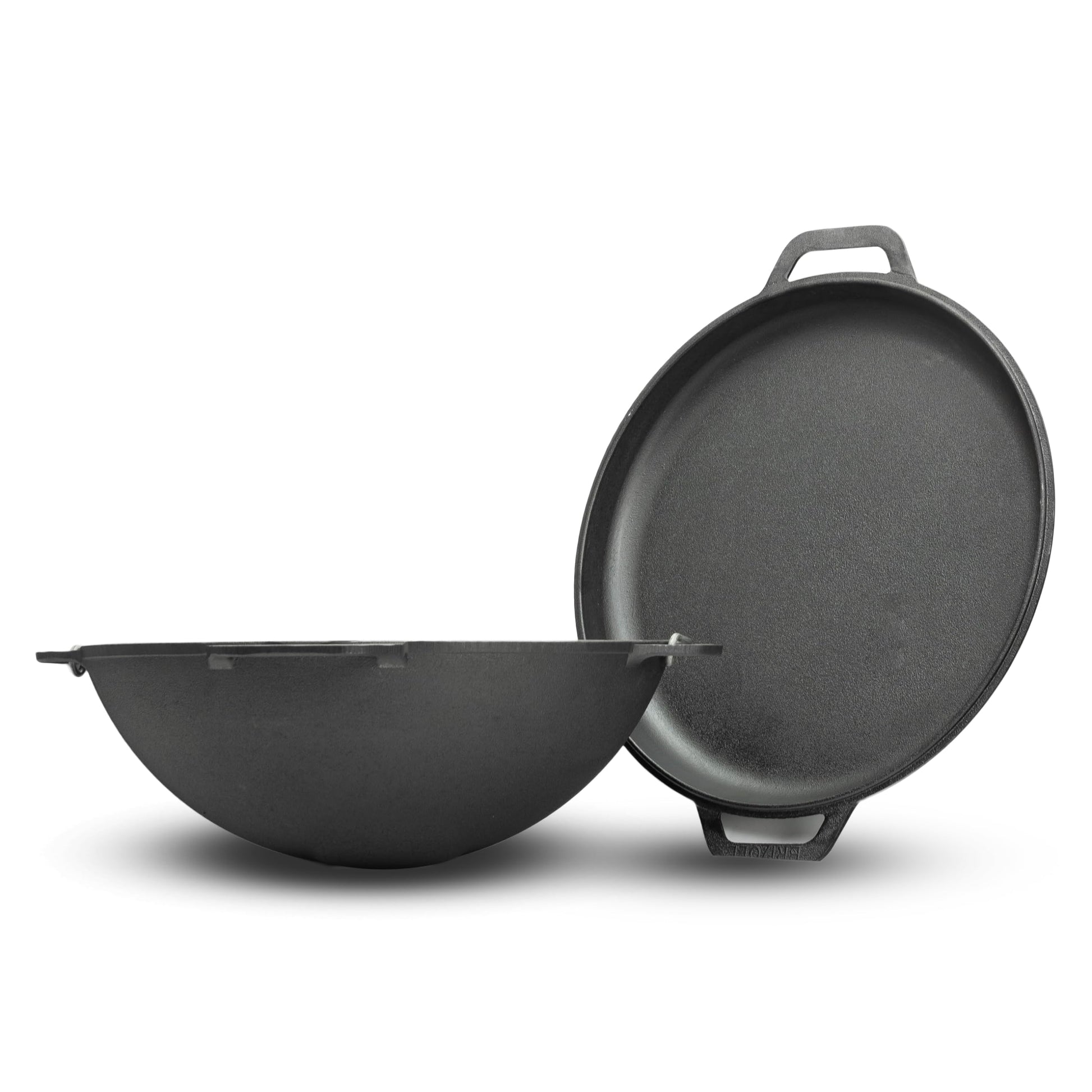 4BIG.fun Cast Iron Kazan 8 L Swivel Pot Kasan with Lid Frying Pan Wok Pan Grill Camping Pot Kettle Asia Wok Traditional Cast Pot Grill Wok